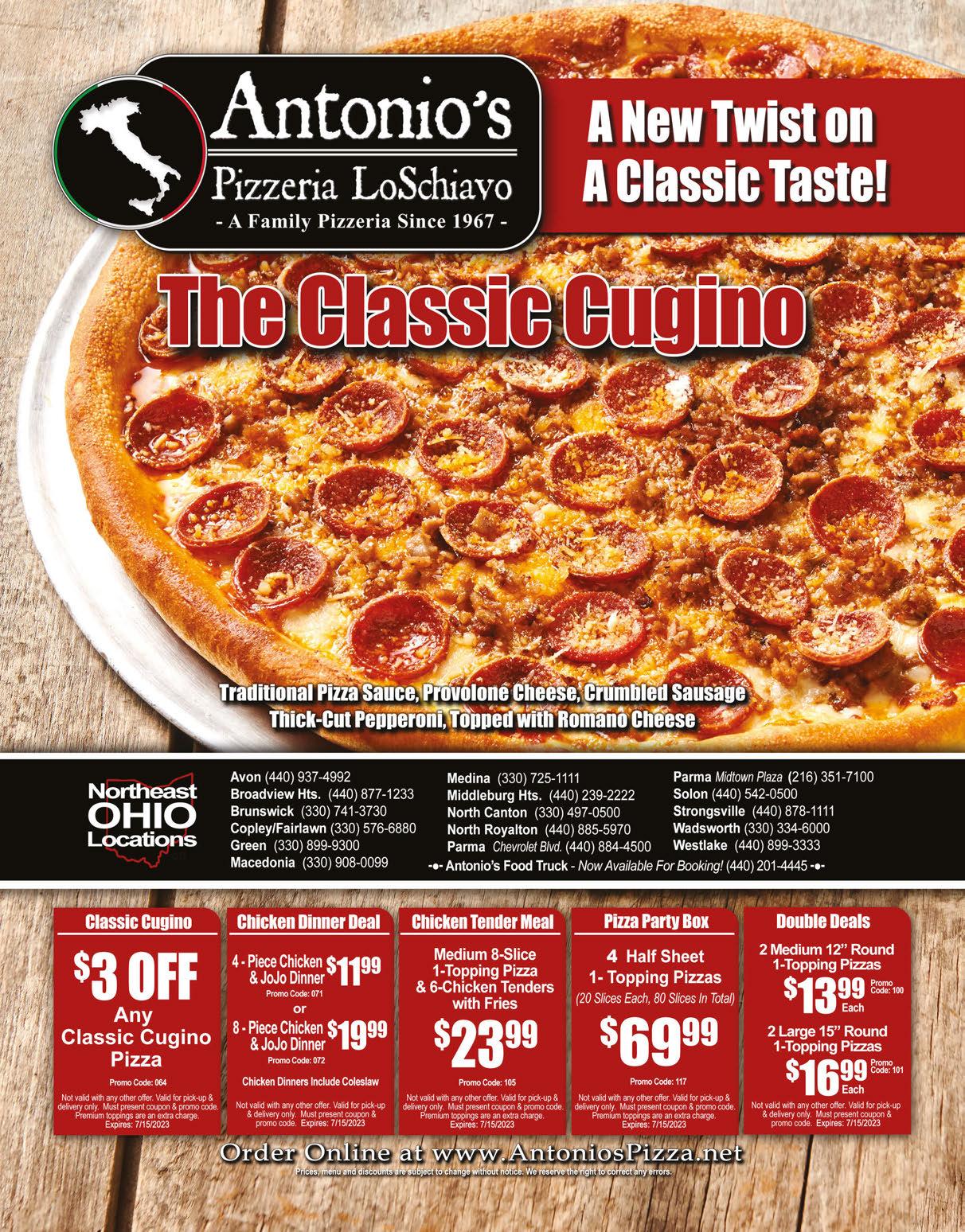 2 XLARGE 2-TOPPING PIZZAS $28.99 2 MEDIUM 2-TOPPING PIZZAS $22.99 Emilio’s Exclusive Offer. Cannot be combined with any other offer. Expires 7-13-23 Emilio’s Exclusive Offer. Cannot be combined with any other offer. Expires 7-13-23 Emilio’s Exclusive Offer. Cannot be combined with any other offer. Expires 7-13-23 Emilio’s Exclusive Offer. Cannot be combined with any other offer. Expires 7-13-23 Emilio’s Exclusive Offer. Cannot be combined with any other offer. Expires 7-13-23 1 MEDIUM UP TO 3-TOPPINGS PIZZA $12.99 1 XL 16” 1-TOPPING PIZZA & 10 WINGS $25.99 1 XL 16” 1-TOPPING PIZZA & 1 LARGE GARDEN SALAD $20.99 Emilio’s Exclusive Offer. Cannot be combined with any other offer. Expires 7-13-23 Half Sheet 1 Topping Pizza & 20 Wings $39.99 Emilio’s Exclusive Offer. Cannot be combined with any other offer. Expires 7-13-23 2 Half Sheet 1 Topping Pizzas Full Tray of Chicken Tenders Full Tray of Salad $99.99