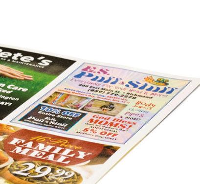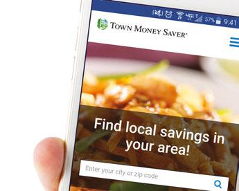 Local advertising made easy. Attract repeat customers. Grow your business. Contact Laura for more information. 330.350.2089 | lgrozan@townmoneysaver.com EFFECTIVE | AFFORDABLE | CONVENIENT | TARGETED townmoneysaver.com/advertise MAGAZINE ADS DIGITAL PACKAGE | • Business profile and printable coupon listings on the TMS website • Listing on the TMS mobile app • Promotion on the local TMS Facebook page PREMIUM PRODUCTS • Individual Inserts • Stand-Alone Postcards • Menus, Door Hangers & More