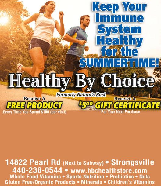 STRONGSVILLE June 2023 Shop locally. Save locally. 7/13/23 NOW HIRING 25% OFF Any Purchase One coupon per customer. Not valid with any other offer. Some restrictions apply. Expires 7/13/23 S 25% OFF Any Purchase One coupon per customer. Not valid with any other offer. Some restrictions apply. Expires 7/13/23 S 14312 Pearl Road Strongsville (Across from Hobby Lobby) 440-572-0233 Hrs: Mon & Tue 8-5 • Thur & Fri 8-5 • Sat 8-4 Closed Sunday & Wednesday ALL DRY CLEANING DONE ON PREMISES $500 OFF Your Next Dry Cleaning Order of $25 or More (Excludes Shirts) Not Valid with Any Other Offer. Must Present Coupon at time of order. Expires 7-13-23 Any Size Comforter $2899 (Down Extra) Not Valid with Any Other Offer. Must Present Coupon at time of order. Expires 7-13-23 20% OFF Winter Coats Not Valid with Any Other Offer. Must Present Coupon at time of order. Expires 7-13-23 2 Piece Suits $2 $200 OFF Not Valid with Any Other Offer. Must Present Coupon at time of order. Expires 7-13-23 Pre Paid Smoothies, Healthy Wraps, Salads, Fresh Fruit and Vegetable Juice, Nutritious Wheatgrass! Valid at Strongsville location only. One coupon per customer per visit. Offers cannot be combined. Must present coupon at time of purchase. Expires 7/22/23 PULPJUICEANDSMOOTHIE.COM Valid at Strongsville location only. One coupon per customer per visit. Offers cannot be combined. Must present coupon at time of purchase. Expires 7/22/23 Valid at Strongsville location only. One coupon per customer per visit. Offers cannot be combined. Must present coupon at time of purchase. Expires 7/22/23 Valid at Strongsville location only. One coupon per customer per visit. Offers cannot be combined. Must present coupon at time of purchase. Expires 7/22/23