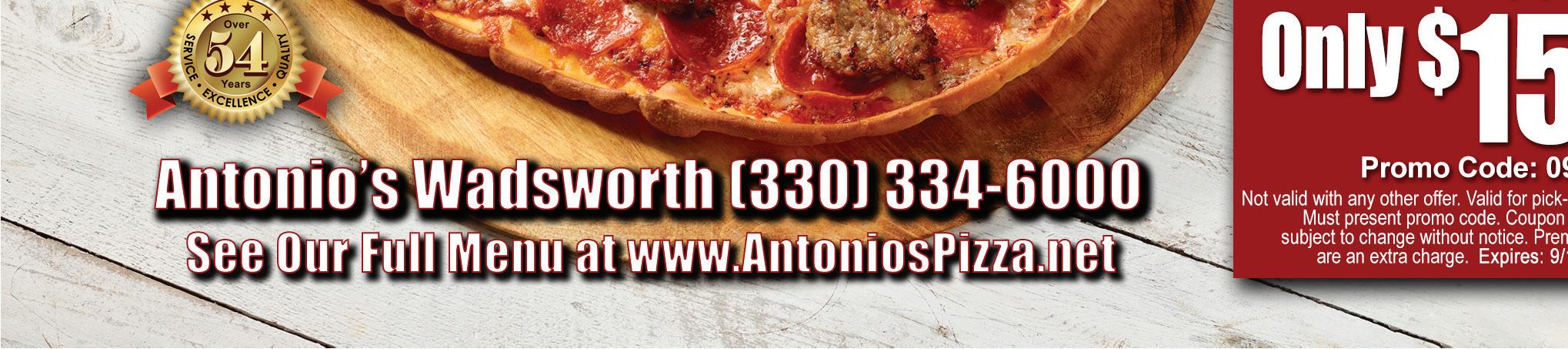 www.pizzaziospizzawadsworth.com • pizza44281.com www.pizzaziospizzawadsworth.com • pizza44281.com • www.pizzaziospizzawadsworth.com • pizza44281.com www.pizzaziospizzawadsworth.com • pizza44281.com • www.pizzaziospizzawadsworth.com • pizza44281.com • www.pizzaziospizzawadswor th.com www.pizzaziospizzawadsworth.com • pizza44281.com • www.pizzaziospizzawadsworth.com • pizza44281.com www.pizzaziospizzawadsworth.com • pizza44281.com • www.pizzaziospizzawadsworth.com • pizza44281.com • www.pizzaziospizzawadswor th.com Sorry No Checks. Use Your Check Debit Card Order from Our Menu Online *Premium Toppings are extra charge. (Toppings in coupon/specials are regular toppings only) Expires 9-1-22 TMS15 TMS7 TMS16 $5 Anytime Menu $6 Anytime Menu $8 Anytime Menu DEBIT Expires 9-1-22 Expires 9-1-22 TMS18 Expires 9-1-22 TMS20 TMS19 For Deliveries Outside of Wadsworth NOW ACCEPTING CASH FOR ONLINE ORDERS WACKY WEDNESDAY $7.00 $6.00 TMS11 157 Broad St. • Wadsworth (carryout or delivery) $2.00 Delivery ($7.00 Minimum Food Order for Delivery) PIZZA DEAL OPEN 10:30AM-9:00PM EVERYDAY Pick-Up Only Medium 1-Topping Pizza Medium Cheese Pizza EVERYDAY TMS17 TMS12 TMS13 PLEASE MENTION CODE WHEN ORDERING Footlong Sub & Small Fries $9.99 TMS14 PIZZA & WING DEAL PIZZA & WING SPECIAL Medium 1-Topping Pizza & 12 Boneless Wings $19.99 X-Large 1-Topping Pizza & 18 Boneless Wings $29.99 FOLDOVER DEAL Medium Foldover & Medium 1-Topping Pizza $25.99 PIZZA & WINGS SPECIAL X-Large 1-Topping Pizza, Medium Cheesy Bread & 12 Jumbo Reg. Wings $39.99 PIZZA & TENDERS DEAL X-Large 1-Topping Pizza & Full Loaf of Garlic Bread with Cheese $19.99 PIZZA DEAL X-Large 1-Topping Pizza & Small Foldover $24.99 Expires 9-1-22 Expires 9-1-22 Add $1.00 Each Philly Steak/Chicken Ranch Not available with Fish PIZZA DEAL Small 3-Topping Pizza $9.99 SUB DEAL Medium Foldover & Full Loaf of Garlic Bread with Cheese $19.99 Expires 9-1-22 TMS6 FOLDOVER DEAL For Our Best Specials & Faster Service: Order Online NO LIMIT TMS8 TMS10 • Small Fried Mushrooms w/Ranch • Full Loaf of Garlic Bread w/Cheese • 10 pc Mini Tacos • Personal Pepperoni Pizza (No Substitutions) • 7 Boneless Wings • 5 pc Fish Sticks & Fries • 7 Jalapeno Cheddar Poppers • 5 Chicken Tenders w/1 Dipping Sauce • Footlong Pizza Sub • 7pc Fish Sticks & Fries • 8 Cheese Sticks & Marinara • Small Garden Salad TMS5 NO LIMIT Expires 9-1-22 Expires 9-1-22 Expires 9-1-22 Expires 9-1-22 Expires 9-1-22 Expires 9-1-22 Expires 9-1-22 Expires 9-1-22 PIZZA & SALAD DEAL Small 1-Topping Pizza & Side Salad $9.99 TMS9 X-Large Pizza $14.99 1-Topping $16.99 2-Topping NO LIMIT Two Footlong Subs & Large JoJo’s $20.99 SUB DEAL Add $1.00 Each Philly Steak/Chicken Ranch Not Available with Fish FOLDOVER DEAL Medium Foldover & X-Large 1-Topping Pizza $29.99 PIZZA DEAL Medium 2-Topping Pizza $11.99 NO LIMIT BURGER DEAL Two 1/2lb Classic Cheeseburgers & Two Small Fries $20.99