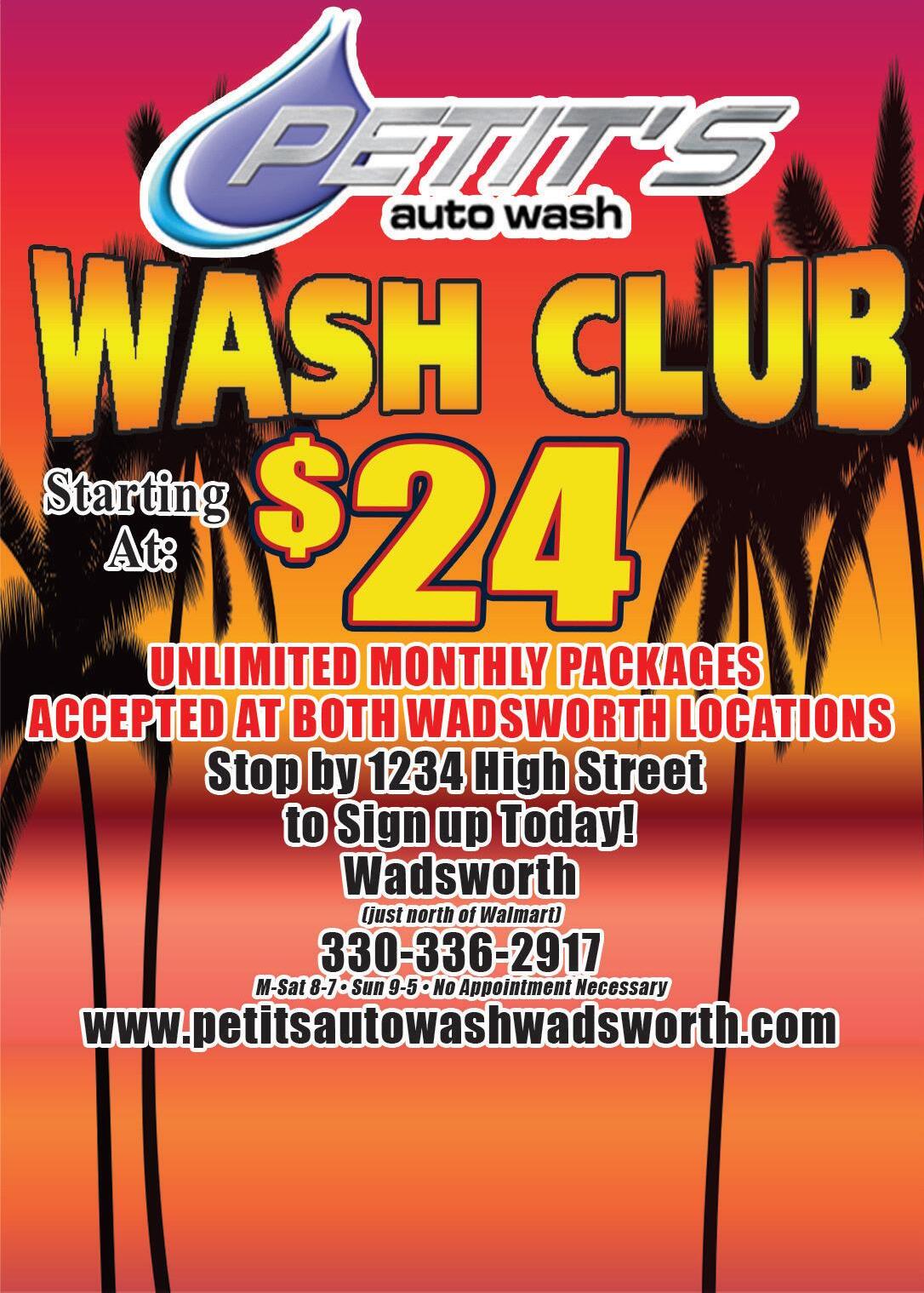 $4 OFF ULTIMATE HOT WAX OR WORKS WASH 1234 High Street location.Not valid with any other offers. Expires 9/1/22 Must Present Coupon. Not Valid With Any Other Offer. 1234 High St, Wadsworth. Expires 9/1/22 $5 OFF ANY OIL CHANGE www.facebook.com/Petitsautowashandlube FREE VACS FROM 8AM-8PM WADSWORTH’S TOUCH-ONLYFREE AUTO WASH! NEW WADSWORTH LOCATION COMING SOON!