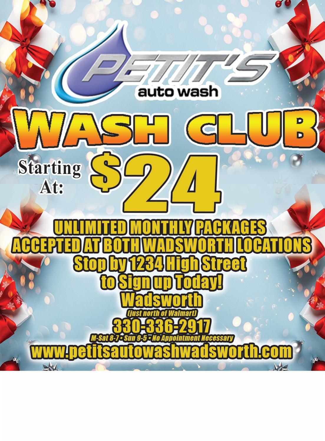 NOW HIRING! Happy Holidays! Includes 10 Tacos (Hard or Soft) Your Choice of • Ground Beef • Shredded or Grilled Chicken Includes Chips & Large Salsa, Rice, Beans, Lettuce & Cheese PLUS FREE Cheese Dip (Feeds 4) Chicken $34.99 Steak $39.99 Shrimp $39.99 Includes Rice & Beans, Tortilla, Side of Lettuce & Sour Cream, 2 Large Chips & Large Salsa $4 OFF ULTIMATE HOT WAX OR WORKS WASH 1234 High Street location.Not valid with any other offers. Expires 1/5/23 Must Present Coupon. Not Valid With Any Other Offer. 1234 High St, Wadsworth. Expires 1/5/23 $5 OFF ANY OIL CHANGE www.facebook.com/ Petitsautowashandlube WADSWORTH’S TOUCH-ONLYFREE AUTO WASH! NEW WADSWORTH LOCATION COMING SOON!