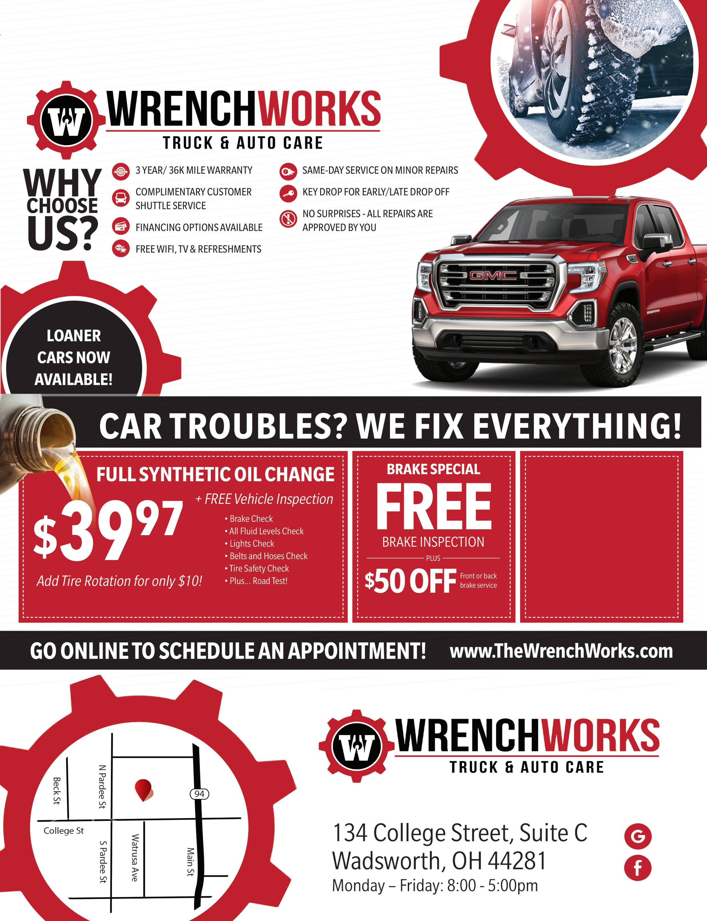 CALL TODAY! 330-331-0099 *For faster service, please call ahead for an appointment. Oil change includes up to 5 qts. of motor oil and new oil filter. Cannot combine with any other offers. Must present coupon at check-in. Expires 1-5-23. *Additional parts and/or labor extra. Cannot combine with any other offers. Must present coupon at check-in. Expires 1-5-23. HAVE YOUR VEHICLE READY FOR THE WINTER! FREE 35+ YEARS EXPERIENCE WITH DIESELS! YOUR LOCAL DIESEL AND TRUCK EXPERTS Test Battery & Charging System, Check Antifreeze Condition and Level, Test Heating System & Temperature, and Inspect Tire and Brake Condition. Additional Services, Diagnostic Testing, or Repairs. $99.95 DIESEL ENGINE OIL CHANGE UP TO 15 QUARTS Most Vehicles *Additional parts and/or labor extra. Cannot combine with any other offers. Must present coupon at check-in. Expires 1-5-23. - PLUS$25 OFF *Additional parts and/or labor as well as Freon extra. Cannot combine with any other offers. Must present coupon at check-in. Expires 1-5-23.