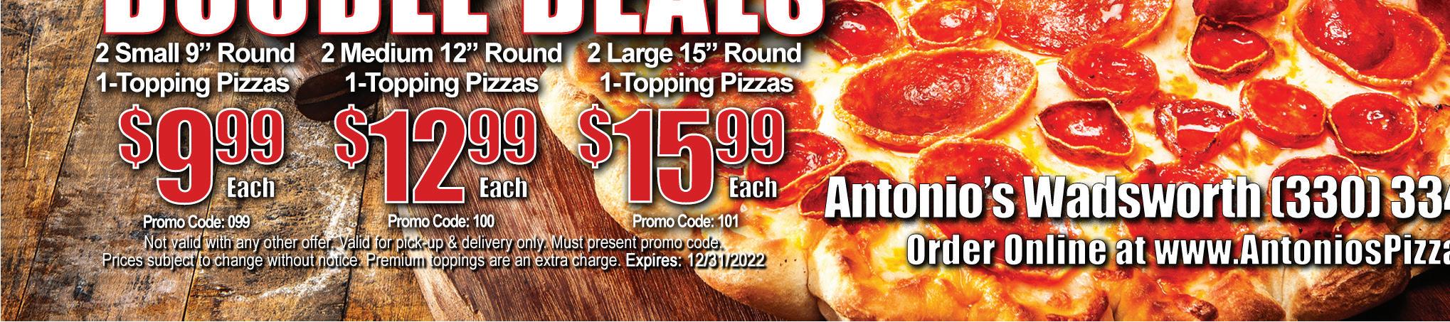 www.pizzaziospizzawadsworth.com • pizza44281.com • www.pizzaziospizzawadsworth.com • pizza44281.com www.pizzaziospizzawadsworth.com • pizza44281.com • www.pizzaziospizzawadsworth.com • pizza44281.com • www.pizzaziospizzawadswor th.com www.pizzaziospizzawadsworth.com • pizza44281.com • www.pizzaziospizzawadsworth.com • pizza44281.com www.pizzaziospizzawadsworth.com • pizza44281.com • www.pizzaziospizzawadsworth.com • pizza44281.com • www.pizzaziospizzawadswor th.com Sorry No Checks. Use Your Check Debit Card *Premium Toppings are extra charge. (Toppings in coupon/specials are regular toppings only) Expires 1-5-23 TMS11 TMS3 TMS12 $5 Anytime Menu $6 Anytime Menu $8 Anytime Menu DEBIT Expires 1-5-23 Expires 1-5-23 TMS14 Expires 1-5-23 TMS16 TMS15 WACKY WEDNESDAY $7.00 $6.00 TMS6 157 Broad St. • Wadsworth (carryout or delivery) $3.00 Delivery Fee ($7.00 Minimum Food Order for Delivery) P N 1 0 00P V YD 7 D S Pick-Up Only Medium 1-Topping Pizza Medium Cheese Pizza OPEN 10:30 M-9:00P EVERYDAY 7 DAYS EEK TMS13 TMS8 TMS9 PLEASE MENTION CODE WHEN ORDERING TMS10 PIZZA & WING SPECIAL X-Large 1-Topping Pizza & 18 Boneless Wings $29.99 FOLDOVER DEAL Medium Foldover & Medium 1-Topping Pizza $25.99 PIZZA & TENDERS DEAL X-Large 1-Topping Pizza & Full Loaf of Garlic Bread with Cheese $19.99 Expires 1-5-23 Expires 1-5-23 Add $2.00 Each Philly Steak/Chicken Ranch/Gryo PIZZA DEAL Small 1-Topping Pizza $6.99 Expires 1-5-23 TMS2 NO LIMIT TMS4 TMS5 • Full Loaf of Garlic Bread w/Cheese • 10 pc Mini Tacos • Personal Pepperoni Pizza (No Substitutions) • 7 Boneless Wings • 7 Jalapeno Cheddar Poppers • 5 Chicken Tenders w/1 Dipping Sauce • 3 Piece Chicken Tenders & JoJo’s • 8 Cheese Sticks & Marinara • Small Garden Salad • Small 10” 1-Topping Pizza TMS1 Expires 1-5-23 Expires 1-5-23 Expires 1-5-23 Expires 1-5-23 Expires 1-5-23 Expires 1-5-23 Expires 1-5-23 Expires 1-5-23 PIZZA & SALAD DEAL Personal 1 Topping Pizza & Side Salad $8.99 TMS7 PIZZA DEAL Small 3-Topping Pizza $9.99 NO LIMIT PIZZA DEAL Two Medium 1 Topping Pizzas $19.99 SO MANY WAYS TO ORDER! 1. Order Delivery or Pickup Online @pizza44281.com 2. Call Us for Delivery or Pickup 3. Use DOORDASH for deliveries outside Wadsworth TENDERS DEAL 4 Tenders, JoJo’s & 20 oz Coke Prodcut $7.99 PIZZA DEAL Medium 2-Topping Pizza $11.99 PIZZA DEAL X-Large Pizza $14.99 1-Topping $16.99 2-Topping NO LIMIT PERSONAL DEAL Personal Foldover & Side Salad $10.99 Medium Foldover & Full Loaf of Garlic Bread with Cheese $19.99 FOLDOVER DEAL PIZZA & WING DEAL Medium 1-Topping Pizza & 12 Boneless Wings $19.99 PIZZA & CHICKEN DEAL X-Large 1-Topping Pizza 8 pc Chicken Tenders & JoJo’s $27.99 FOLDOVER DEAL Large Foldover & Small Cheesy Bread$29.99 Add $3.00 Each Philly Steak/Chicken Ranch/Gryo Add $2.00 Each Philly Steak/Chicken Ranch/Gryo Add $1.00 Each Philly Steak/Chicken Ranch/Gryo