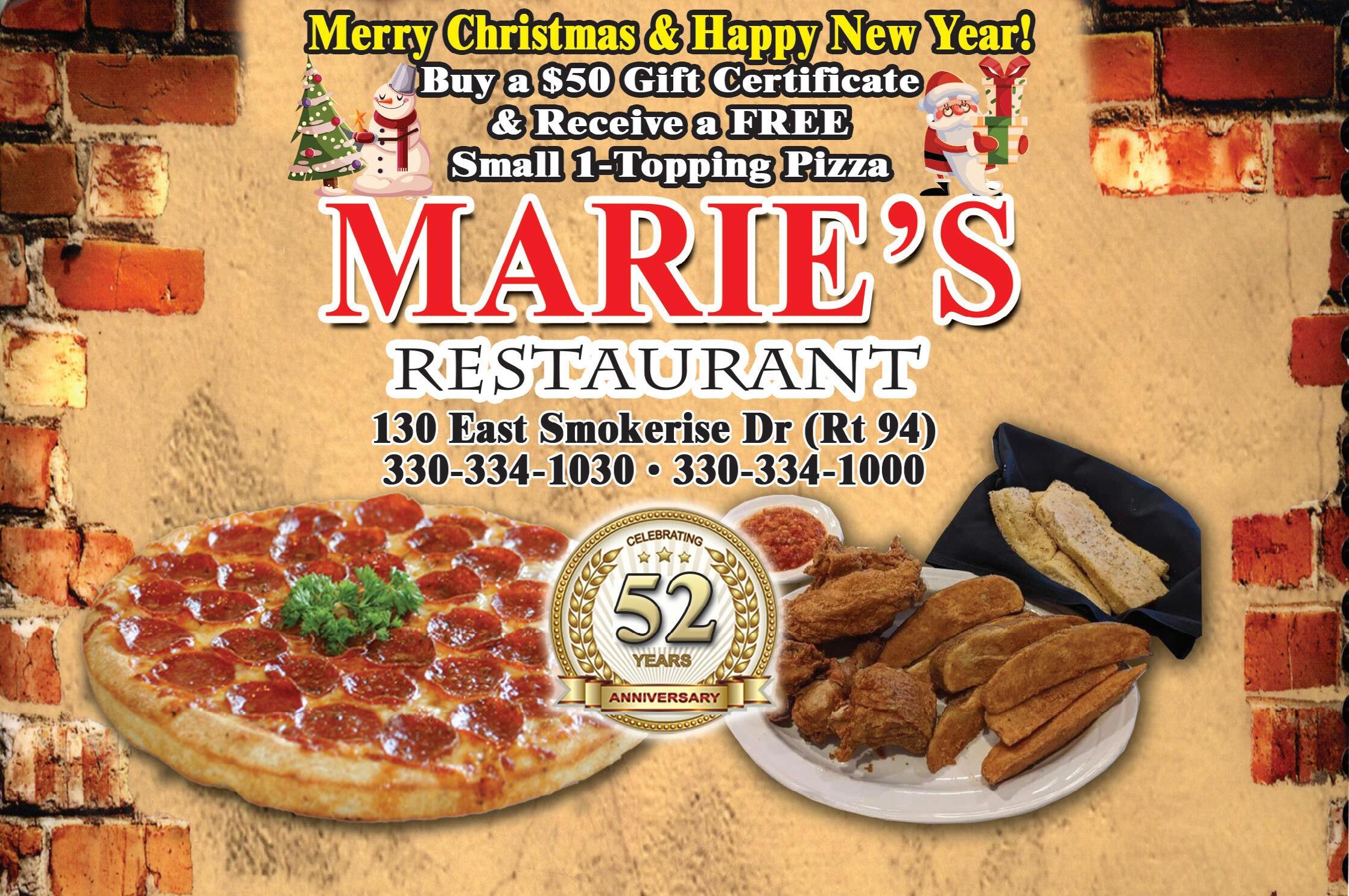 WADSWORTH December 2022 Shop local. Drive less. Save more. Support LOCAL businesses! For a Full Menu: www.whitehousechicken.com EXCLUDING DRUMMETTE DINNERS Tuesday Special NOT VALID IN CONJUNCTION WITH ANY ONLINE CHOW NOW ORDERS. Limit one coupon per customer.Must present coupon at time of purchase. Not valid with any other offer. Valid at Wadsworth location only. Expires 1/5/23 TMS NOT VALID IN CONJUNCTION WITH ANY ONLINE CHOW NOW ORDERS. Limit one coupon per customer.Must present coupon at time of purchase. Not valid with any other offer. Valid at Wadsworth location only. Expires 1/5/23 TMS Classic Chicken Dinner $1095 Thursday Special 4pc. Chicken Tender Dinner $1095 WADSWORTH 199 Great Oaks Trail 330-335-6000 Hours: Mon 4pm-8pm • Tues, Wed, Thurs 4pm-9pm Fri & Sat 11am-9pm • Sun 11am-8pm Buy 2 Classic Chicken Dinners Get a 3rd Classic Chicken Dinner FREE Buy a 16pc Mixed or 20pc Tender Bucket Get $5.00 OFF Order Online with Order with ChowNow or @www.whitehousechicken.com go to online ordering or on our Facebook Page We now have our own app through Chow Now! Download to your phone for online ordering and delivery through Chow Now at both Wadsworth and Green locations. Sign up for our new loyalty program through Chow Now! DOWNLOAD OUR NEW APP TODAY! NO COUPON NECESSARY w w w . v a n s t i r e p r o s . c o m Valid with coupon. Not valid with any other offer or specials. Expires 1/5/23 Downtown Wadsworth 146 Main Street Wadsworth BREAKFAST 2 Eggs, Choice of Homefries, Fruit or Grits with Toast • Bacon, Sausage or Ham $599 Valid Mon-Fri till 11am Only Valid only with coupon. Not valid with any other offer or specials. Expires 1-5-23 Valid Mon-Fri Open till 11am Only Valid only with coupon. Not valid with any other offer or specials. Expires 1-5-23 ALEXANDRI’S FAMILY RESTAURANT DINNER FOR TWO Choice of Pork Chops, Tilapia or Meatloaf $2099 Includes Potato & Vegetable, Soup & Salad Bar Valid 11am till Close Valid only with coupon. Not valid with any other offer or specials. Expires 1-5-23 Includes Potato or Vegetable, Soup or 1 trip to Salad Bar ALEXANDRI’S FAMILY RESTAURANT Specials excluded. Valid only with coupon. Not valid with any other offer or specials. Expires 1-5-23 ALEXANDRI’S FAMILY RESTAURANT limit 2 per table limit 2 per table BREAKFAST 2 Pancakes or 2 French Toast, Choice of Bacon, Sausage or Ham $599 ALEXANDRI’S FAMILY RESTAURANT ALEXANDRI’S FAMILY RESTAURANT (Limit 2 per coupon) ALEXANDRI’S FAMILY RESTAURANT Each Valid only with coupon. Not valid with any other offer or specials. Expires 1-5-23 Valid 11am till Close SALAD SPECIAL Our Famous Greek Salad $775 Includes a Cup or Soup Valid 11am till Close Valid only with coupon. Not valid with any other offer or specials. Expires 1-5-23 DINNER SPECIAL Breaded Clam Strips $849 ALEXANDRI’S RESTAURANT “Great Food, Great Service, Unbeatable Prices” Serving Medina County 30 Years! 10% OFF Your Total Bill MUST ORDER OFF REGULAR MENU ONLY Valid All Day V R S URD Y PRI IB EVERY SATURDAY PRIME RIB Every riday All-U-Can-Eat Hand readed Fish Fry Friday Breaded Fish