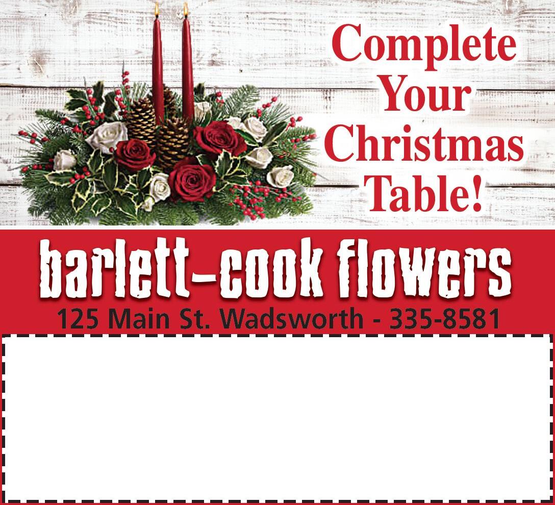 $5 OFF BARLETT-COOK FLOWERS Fresh Floral Arrangements of $25 or More PICK UP ONLY. Cash or credit card Only. Excludes wire orders. Not valid with any other offer. Expires 1-5-23 Not to be combined with any other offer, discount or daily special. Expires 1/5/23 Hours: Tuesday - Thursday 3pm til 10pm • Friday & Saturday 11am til 1am • Sunday 11am til 8pm • Closed Monday MUSIC SCHEDULE 12/2 - Woovs plus a saucy brew works tap take over 12/3 - False Alarm 12/9 - Disco Inferno 12/10 - Cleveland Keys 12/16 - John and Joe 12/17 - Mr. Pink 12/23 - Tripper 12/24 - CLOSED 12/25 - CLOSED 12/30 - Retro 12/31 - Walking in Circles Valid with coupon. Not valid with any other offer. Expires 1-5-23. $5 OFF Valid with coupon. Not valid with any other offer. Expires 1-5-23. PURCHASE OF $35 $5 OFF ANY 2 PAIRS OF REG. PRICE LEGGINGS To Advertise Call Laura at 330-350-2089