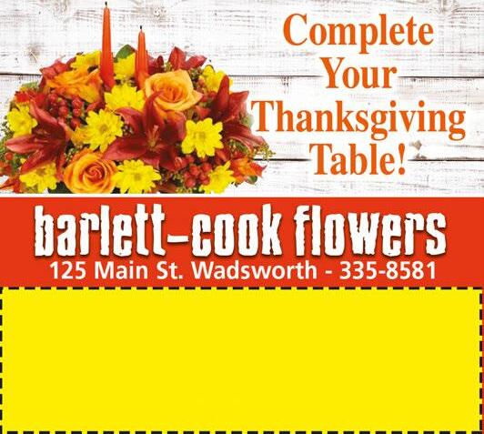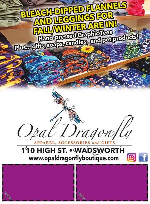 WADSWORTH November 2022 Shop local. Drive less. Save more. Support LOCAL businesses! For a Full Menu: www.whitehousechicken.com EXCLUDING DRUMMETTE DINNERS Tuesday Special NO COUPON NECESSARY NOT VALID IN CONJUNCTION WITH ANY ONLINE CHOW NOW ORDERS. Limit one coupon per customer.Must present coupon at time of purchase. Not valid with any other offer. Valid at Wadsworth location only. Expires 12/1/22 TMS NOT VALID IN CONJUNCTION WITH ANY ONLINE CHOW NOW ORDERS. Limit one coupon per customer.Must present coupon at time of purchase. Not valid with any other offer. Valid at Wadsworth location only. Expires 12/1/22 TMS Classic Chicken Dinner $1095 Thursday Special 4pc. Chicken Tender Dinner $1095 WADSWORTH 199 Great Oaks Trail 330-335-6000 Hours: Mon 4pm-8pm • Tues, Wed, Thurs 4pm-9pm Fri & Sat 11am-9pm • Sun 11am-8pm Buy 2 Classic Chicken Dinners Get a 3rd Classic Chicken Dinner FREE Buy a 16pc Mixed or 20pc Tender Bucket Get $5.00 OFF Order Online with Order with ChowNow or @www.whitehousechicken.com go to online ordering or on our Facebook Page We now have our own app through Chow Now! Download to your phone for online ordering and delivery through Chow Now at both Wadsworth and Green locations. Sign up for our new loyalty program through Chow Now! DOWNLOAD OUR NEW APP TODAY! GIFT CARD SALE 20% OFF ONE DAY ONLY! NOVEMBER 25 CANNOT BE USED ON THAT DAY Forevery yardIrun,you get$1offaset of4select tires! NICK NICK CHUBB CHUBB MONDAYS MONDAYS ARE ARE BACK! BACK! SEEINSIDEAD FORMOREDETAILS! www.vanstirepros.com Valid with coupon. Not valid with any other offer or specials. Expires 12/1/22 Downtown Wadsworth 146 Main Street Wadsworth BREAKFAST 2 Eggs, Choice of Homefries, Fruit or Grits with Toast • Bacon, Sausage or Ham $599 Valid Mon-Fri till 11am Only Valid only with coupon. Not valid with any other offer or specials. Expires 12-1-22 Valid Mon-Fri Open till 11am Only Valid only with coupon. Not valid with any other offer or specials. Expires 12-1-22 ALEXANDRI’S FAMILY RESTAURANT DINNER FOR TWO Choice of Liver & Onions, Chicken a la Francaise or Mini Shrimp $2099 Includes Potato & Vegetable, Soup & Salad Bar Valid 11am till Close Valid only with coupon. Not valid with any other offer or specials. Expires 12-1-22 Includes Potato or Vegetable, Soup or 1 trip to Salad Bar ALEXANDRI’S FAMILY RESTAURANT Specials excluded. Valid only with coupon. Not valid with any other offer or specials. Expires 12-1-22 ALEXANDRI’S FAMILY RESTAURANT limit 2 per table limit 2 per table BREAKFAST 2 Pancakes or 2 French Toast, Choice of Bacon, Sausage or Ham $599 ALEXANDRI’S FAMILY RESTAURANT ALEXANDRI’S FAMILY RESTAURANT (Limit 2 per coupon) ALEXANDRI’S FAMILY RESTAURANT Each Valid only with coupon. Not valid with any other offer or specials. Expires 12-1-22 Valid 11am till Close APPETIZER Stuffed Grape Leaves $499 Includes Pita Bread Valid 11am till Close Valid only with coupon. Not valid with any other offer or specials. Expires 12-1-22 DINNER SPECIAL 1/2 Dozen Breaded Jumbo Shrimp $849 ALEXANDRI’S RESTAURANT “Great Food, Great Service, Unbeatable Prices” Serving Medina County 30 Years! 10% OFF Your Total Bill MUST ORDER OFF REGULAR MENU ONLY Valid All Day EVERY SATURDAY PRIME RIB Every Friday All-U-Can-Eat Hand Breaded Fish Fry Fish