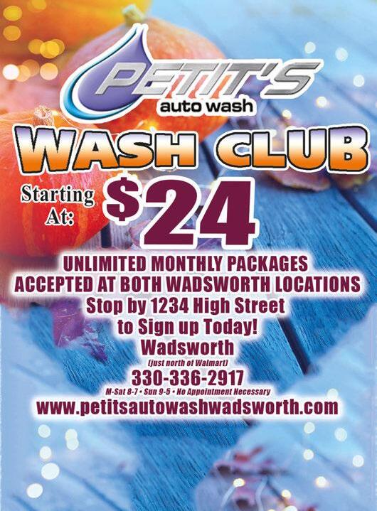 $4 OFF ULTIMATE HOT WAX OR WORKS WASH 1234 High Street location.Not valid with any other offers. Expires 12/1/22 Must Present Coupon. Not Valid With Any Other Offer. 1234 High St, Wadsworth. Expires 12/1/22 $5 OFF ANY OIL CHANGE www.facebook.com/ Petitsautowashandlube WADSWORTH’S TOUCH-ONLYFREE AUTO WASH! NEW WADSWORTH LOCATION COMING SOON!