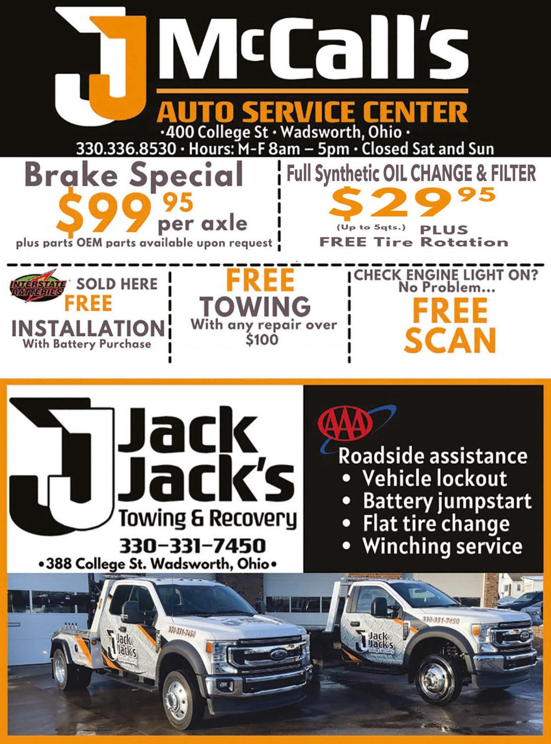 (Within Wadsworth City Limits) Valid only with Jack Jack’s Towing. With coupon. Not valid with any other offer. Please present before service. Expires 12/1/22