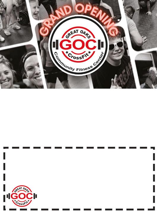 Great Oaks CrossFit Community Fitness Center JOIN US FOR OUR GRAND REOPENING CELEBRATION Date: 10/29 • Time: 9am Free Community Workout at 9:30am for all levels Food • Games • Prizes 1 MONTH GRAND REOPENING SPECIAL $99 Offer will expire November 29th. New Members Only. To claim this offer call 330-636-0761 or scan QR Code Carry out only. Not valid with any other offer or special. Must bring in coupon. Expires 12/1/22. Not valid with any other offer or special. Must bring in coupon. Expires 12/1/22. Not valid with any other offer or special. Must bring in coupon. Expires 12/1/22. Carry out only. Not valid with any other offer or special. Must bring in coupon. Expires 12/1/22. Carry out only. Not valid with any other offer or special. Must bring in coupon. Expires 12/1/22. Carry out only. Not valid with any other offer or special. Must bring in coupon. Expires 12/1/22. W W W W W W 2 Medium Two Item Pizzas $27.99 Large Two Items Pizza $16.99 2 Large One Item Pizzas $27.99 DINE-IN ONLY $5.00 OFF Any Purchase of $35 or More DINE-IN OR CARRY OUT Any 2 Pasta Dinners $13.99 Choose from: Spaghetti, Penne, Rigatoni, Angel Hair, Campanelle Includes Garlic Bread 12pc Chicken, JoJo’s, Pint of Coleslaw & Pint of Hot Sauce $24.95 $5 OFF BARLETT-COOK FLOWERS Fresh Floral Arrangements of $25 or More Pick Up Only. Cash or credit card Only. Excludes wire orders. Not valid with any other offer. Expires 12-1-22 To Advertise Call Laura at 330-350-2089