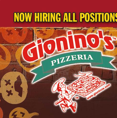 330-334-9191 • www.gioninos.com 138 Akron Rd. • Wadsworth • (Serving Wadsworth & Pick-Up Only for Sharon Center) Delivery Available • $10 Minimum Order • Limited Area GIONINO’S PIZZERIA Coupon expires 12-1-2022. Not valid with any other offer. Valid only at Wadsworth location. TMS GIONINO’S PIZZERIA Coupon expires 12-1-2022. Not valid with any other offer. Valid only at Wadsworth location. TMS GIONINO’S PIZZERIA Coupon expires 12-1-2022. Not valid with any other offer. Valid only at Wadsworth location. TMS GIONINO’S PIZZERIA Coupon expires 12-1-2022. Not valid with any other offer. Valid only at Wadsworth location. TMS GIONINO’S PIZZERIA Coupon expires 12-1-2022. Not valid with any other offer. Valid only at Wadsworth location. TMS GIONINO’S PIZZERIA Coupon expires 12-1-2022. Not valid with any other offer. Valid only at Wadsworth location. TMS GIONINO’S PIZZERIA (Excludes Steak) Coupon expires 12-1-2022. Not valid with any other offer. Valid only at Wadsworth location. TMS GIONINO’S PIZZERIA Coupon expires 12-1-2022. Not valid with any other offer. Valid only at Wadsworth location. TMS GIONINO’S PIZZERIA Coupon expires 12-1-2022. Not valid with any other offer. Valid only at Wadsworth location. TMS GIONINO’S PIZZERIA Coupon expires 12-1-2022. Not valid with any other offer. Valid only at Wadsworth location. TMS GIONINO’S PIZZERIA Coupon expires 12-1-2022. Not valid with any other offer. Valid only at Wadsworth location. TMS GIONINO’S PIZZERIA Coupon expires 12-1-2022. Not valid with any other offer. Valid only at Wadsworth location. TMS FREE Small Cheese Pizza with Purchase of A Large Specialty Pizza Large 16” 2-Item Pizza Only $1795 Medium 12” Pizza With 2-Items Only $1195 Large 16” 1-Item Pizza, 12 Wings (Jumbo Reg. or Boneless) Only $2995 Any 2 Subs Only $1500 2 Medium 12” Pizzas With 1-Item Each Only $2095 Add a pint of cole slaw for $1.95 Large 16” 1-Item Pizza Only $1595 2 Large 16” Pizzas With 1-Item Each Only $3195 Grizzly Feast Large 16” 2-Item Pizza & 12pc. Chicken & JoJo’s Only $3895 Add a pint of cole slaw for $2.50 No Substitutions Mixed or All Dark Junior Grizzly Feast Medium 12” 2-Item Pizza & 8pc. Chicken & JoJo’s Only $2995 Add a pint of cole slaw for $2.50 No Substitutions Mixed or All Dark Sheet 1-Item Pizza Only $2595 24 hr. Notice GIONINO’S PIZZERIA Coupon expires 12-1-2022. Not valid with any other offer. Valid only at Wadsworth location. TMS GIONINO’S PIZZERIA Coupon expires 12-1-2022. Not valid with any other offer. Valid only at Wadsworth location. TMS Lunch Special 11am to 3pm Medium 1-Item Pizza Only $900 (Pick-up Only) Open For Delivery or Pick-Up Chicken Special 12 Mixed Chicken with JoJo’s Only $2095 Wing Special Large 16” 1-Item Pizza & a Box of JoJo’s Only $2395 No Substitutions Add a Pint of Cole Slaw for $250 GIONINO’S PIZZERIA Coupon expires 12-1-2022. Not valid with any other offer. Valid only at Wadsworth location. TMS GIONINO’S PIZZERIA Coupon expires 12-1-2022. Not valid with any other offer. Valid only at Wadsworth location. TMS $2900 24 Boneless $2200 No Substitutions GIONINO’S PIZZERIA Coupon expires 12-1-2022. Not valid with any other offer. Valid only at Wadsworth location. TMS $3295 Weekend Special WELCOME BACK FOOTBALL Large 1-Item Pizza Large Tossed Salad & Dozen Boneless or Jumbo Reg. Wings 2022 FOOTBALL SCHEDULES Oct. 31 Cincinnati Nov. 13 at Miami Nov. 20 at Buffalo Nov. 27 Tampa Bay BROWNS OHIO STATE Oct. 29 at Penn State Nov. 5 at Northwestern Nov. 12 Indiana Nov. 19 at Maryland Nov. 26 Michigan Catering Special $1200 OFF $100 or more on regular menu items Closed Thanksgiving Taking Pre-Orders for Halloween