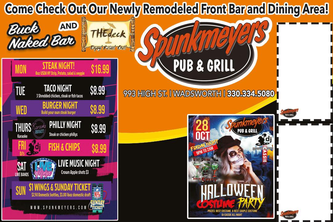 DAILY SPECIALS Tuesday $2.00 Hamburgers $2.00 Tacos or 3 for $5 $2.50 Cheeseburgers Wednesday 99¢ Wings $7.99 Gyro & Fries $2.50 1/4 lb Hot Dogs Thursday $2.50 Hot Dogs 99¢ Wings Chicken Buffet $12.00 Includes 2 Meat Buffet (Chicken Plus a 2nd Meat) Plus a Dessert Friday 3 Pc. Fish Dinner $10.99 Homemade Soups Everyday $3.00 OFF PURCHASE OF $20 OR MORE Valid with coupon. Not Valid with any other offer. Expires 12/1/22 Book Your Holiday Party with us! (call for details) Join Us for OSU Games