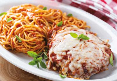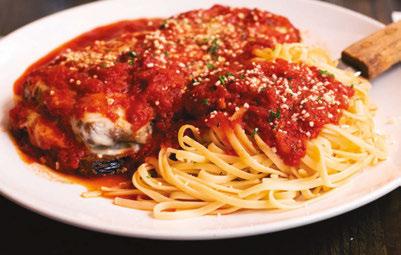 Fresh eggplant handbreaded and fried then topped with house-made tomato sauce and mozzarella. Served with spaghetti with tomato sauce. We’re