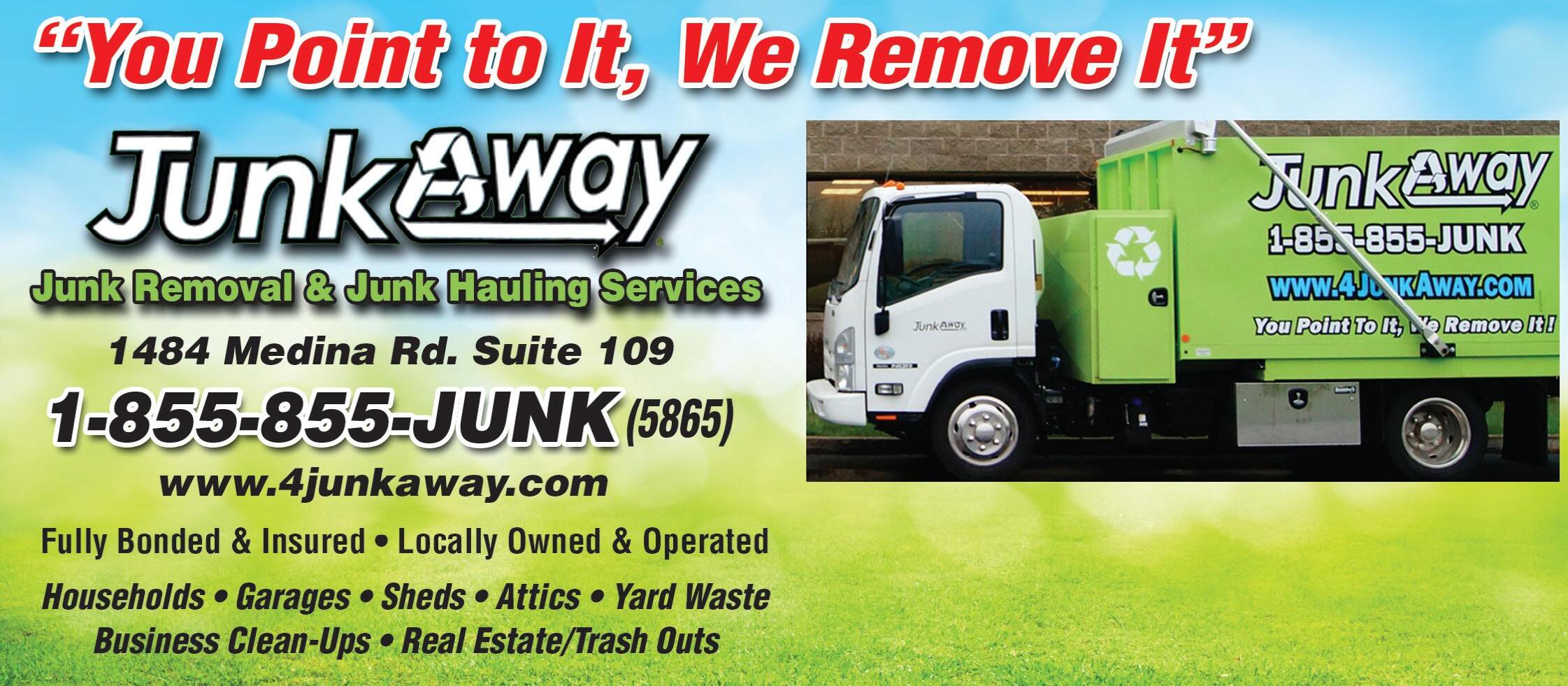 $25 OFF 1/4 Truck or More With coupon. Minimum charges may apply. Not valid with other offers. Expires 9/1/22. JunkAway 855-855-5865 $50 OFF Any Full Truckload With coupon. Minimum charges may apply. Not valid with other offers. Expires 9/1/22. JunkAway 855-855-5865 Our Trucks Are 20% Bigger Than The Largest Competitor TIME TO DE-CLUTTER