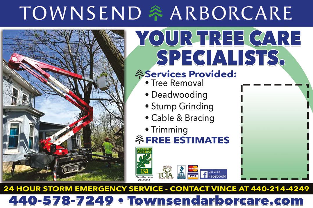 Townsend Arborcare 440-578-7249 Valid with Town Money Saver coupon. New customers only. Some exclusions apply. Credit cards accepted. Not valid with any other offers or prior purchases. $50 OFF Any Tree Service Over $500