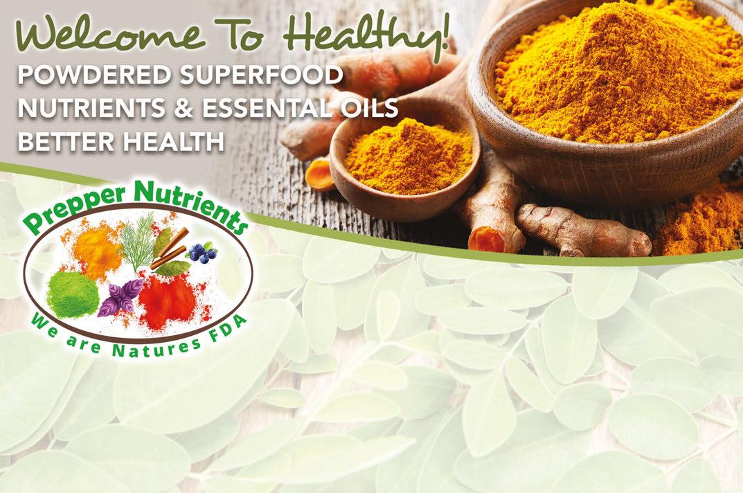 7976 Broadview Rd. Broadview Hts, 44147 440-627-6092 preppernutrients.com info@preppernutrients.com • Powdered Nutrients • Prepper Kits • Organic Plant Powders • Medicinal Herbs • Herbal Teas • 100% Cold Pressed Oils Herbs and Oils for Detox, Energy, Sleep, Blood Pressure, Asthma, Anxiety, Focus, Memory, Thyroid, Heart, Eyes, Stress, Allergies and Many More! Shop Here! Visit Our HERB SHOP and Receive 20% OFF Your First Entire Purchase! Must present coupon. Not valid with any other offer. Expires 3/2/23 Ezekiel 47:12 One coupon per customers. Do not combine with any other offer. Expires 3/31/2023 One coupon per customers. Do not combine with any other offer. Expires 3/31/2023 One coupon per customers. Do not combine with any other offer. Expires 3/31/2023 One coupon per customers. Do not combine with any other offer. Expires 3/31/2023
