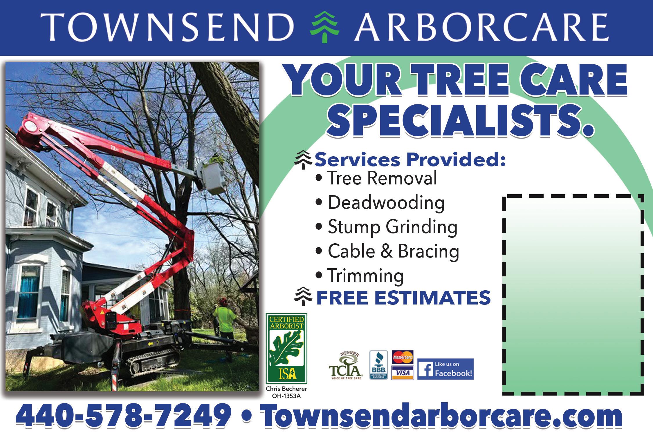 gutterguard1.com 440-366-0688 INSTALLS OVER EXISTING GUTTERS Always On Time, Friendly and Professional BBB ACCREDITED BUSINESS MADE IN OHIO FREE ESTIMATES•SENIOR DISCOUNTS•VETERAN DISCOUNTS $300 OFF Your Order (Minimum footage required) Offer expires10-27-22 •Smooth, sloped and self-shedding profile works great for maple spinners, pine needles, roof grit and other small leaves. •Lifetime Performance Warranty •NOT a screen or filter that can clog •Installation Includes: - Gutter & Downspout Cleaning - Resealing seams & Tightening - Proper slope alignment •Proven to handle heavy rains and 110mph winds. •Patented“Bird Guard System”and comes in 14 colors. Heat Available For Open Gutters & Most Existing Gutter Covers. Shop Local And See The Difference Made in USA Serving Northeast Ohio Since 1998 AL ! L ed S l c o re fo en e s B C ’t l o n g o ! D GUTTER HEATING AVAILABLE FOR ICE DAM PROTECTION Townsend Arborcare 440-578-7249 Valid with Town Money Saver coupon. New customers only. Some exclusions apply. Credit cards accepted. Not valid with any other offers or prior purchases. $50 OFF Any Tree Service Over $500