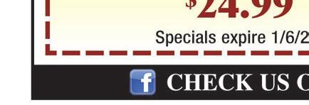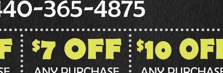 Auto & Tire Service PAIS 440-322-1327 100 Broad Street•Elyria Hours: M-F 7AM-6PM WE WILL MEET OR BEAT ANYBODY’S PRICE! SERVICE SAVINGS Most Vehicles. Coupon Required. Not valid with any other offers. Expires 1-5-23 $ $ 10 OFF 20 OFF $30 OFF 20OFF (Excludes Tire Purchase) Any Service Over $150 Any Service Over $350 Any Service Over $250 REBATES ON SELECT BRANDS! AMBTA LLAJORRANDIRESVAILABLE Winter Battery Sale OIL CHANGE & TIRE ROTATION Most Vehicles. Coupon Required. Not valid with any other offers. Expires 1-5-23 •Oil, Lube & Filter Up to 5 qts oil •Check & Top Off All Fluids •Complete Vehicle Inspection SALE AYTWW? RE OURIRESINTERORTHY Includes FREE Tire Rotation All Season Contour Wiper Blades Wishing All A Safe Holiday & Happy New Year! Federated Car Care YOUR LOCALLY OWNED & OPERATED REPAIR SHOP Online at JohnPaisAutoService $ 39 95 SYNTHETIC BLEND FULL SYNTHETIC OIL & SHOP FEES EXTRA $