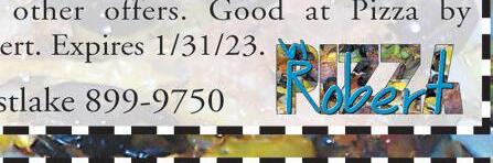 Pat’s Cleaners 28210 Lorain Road North Olmsted (Corner Of Lorain & West Park Dr.) (440) 777-0011 27339 Detroit Rd. Westlake (Corner Of Detroit & Dover) (440) 835-4820 34297 Center Ridge Rd. North Ridgeville (Rini’s Plaza) (440) 327-1013 35925 Detroit Rd. Avon (Near Marc’s) (440) 937-5757 Owner Operated Since 1964 •Wedding Gown Cleaned & Preserved SAVE On 100% Green Eco-Friendly Dry Cleaning 89$1 89$1 Men’s Business Shirts (On Hangers) Men’s Business Shirts (On Hangers) Some Restrictions apply. Expires1/19/23 Some Restrictions apply. Expires1/19/23 % OFF 25 % OFF 25 % OFF 25 % OFF 25 All Dry Cleaning All Dry Cleaning (Not valid on Wedding Dresses, Leather Goods or HouseholdItems) (Not valid on Wedding Dresses, Leather Goods or Household Items) No limit. Present coupon with incoming order. Not valid with any other offer. Expires1/19/23 No limit. Present coupon with incoming order. Not valid with any other offer. Expires1/19/23 Dry Cleaning of Household Items, Bedspreads & Drapes Dry Cleaning of Household Items, Bedspreads & Drapes (Not Valid On In Home Service) No limit. Present coupon with incoming order. Not valid with any other offer. Expires1/19/23 (Not Valid On In Home Service) No limit. Present coupon with incoming order. Not valid with any other offer. Expires1/19/23 WL WL WL WL WL WL •Leather Cleaning •Alterations Available Westlake Open Monday-Fridayam-6pm & Saturdayam-pm 8 93 SALES • SERVICE • INSTALLATION Anderson Heating & Cooling “Providing Healthy Indoor Comfort” Licensed, Bonded, & Insured State License # 36109 Financing Available An E cient Running System Saves Money! ASK ABOUT FreeonEstimates New Equipment Air Conditioning & Heating $50 OFF Air Purifier Call for Price Kills Mold, Bacteria & Viruses, Reduces Allergens, Odors & Smoke. Maintenance Free, Self Cleaning. Furnace Tune-up $89.00 Anderson Heating & Cooling • Tel: (440) 221-7978 “PROVIDING HEALTHY INDOOR COMFORT” With Coupon. Not valid with other discounts. Expires 1/15/23 (440) 221-7978 www.andersonheat.net Happy Holidays!