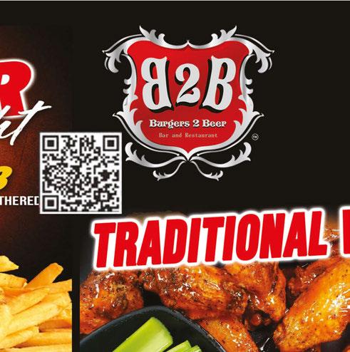 8941 Wilcox Dr Twinsburg 234-212-1188 Full Menu burgers2beer.com 100% GrassBeefFed Mon-Thurs: 11am-10pm • Fri & Sat: 11am-11pm • Sun: 12pm-9pm EXCLUDES HAPPY HOUR SPECIALS & ALCOHOL Twinsburg Location Only. Must present TMS Coupon. Not valid with any other offer or special. Expires 4/12/24 5 OFF Any $25 Purchase EXCLUDES HAPPY HOUR SPECIALS & ALCOHOL Twinsburg Location Only. Must present TMS Coupon. Not valid with any other offer or special. Expires 4/12/24 7 OFF Any $50 Purchase EXCLUDES HAPPY HOUR SPECIALS & ALCOHOL Twinsburg Location Only. Must present TMS Coupon. Not valid with any other offer or special. Expires 4/12/24 $10 OFF Any $60 Purchase Twinsburg Location Only. Must present TMS Coupon. Not valid with any other offer or special. Expires 4/12/24 $5 KIDS MEAL With Each Adult Purchase DINE-IN ONLY LOBSTER BISQUE $6 MAHI-MAHI BITES $16 deep fried mahi-mahi served with a side of tartar sauce SALMON BURGER $15 a perfectly seasoned salmon patty, topped with lettuce, tomato, pickled red onions and a side of sriracha aioli served on a pub grain bun FISH ‘N CHIPS $22 a healthy portion of yuengling-battered haddock, over a bed of natural cut fries, tartar sauce and B2B slaw HADDOCK SANDWICH $16 topped with pickled cabbage and tartar sauce, served on a pub grain bun N N N N