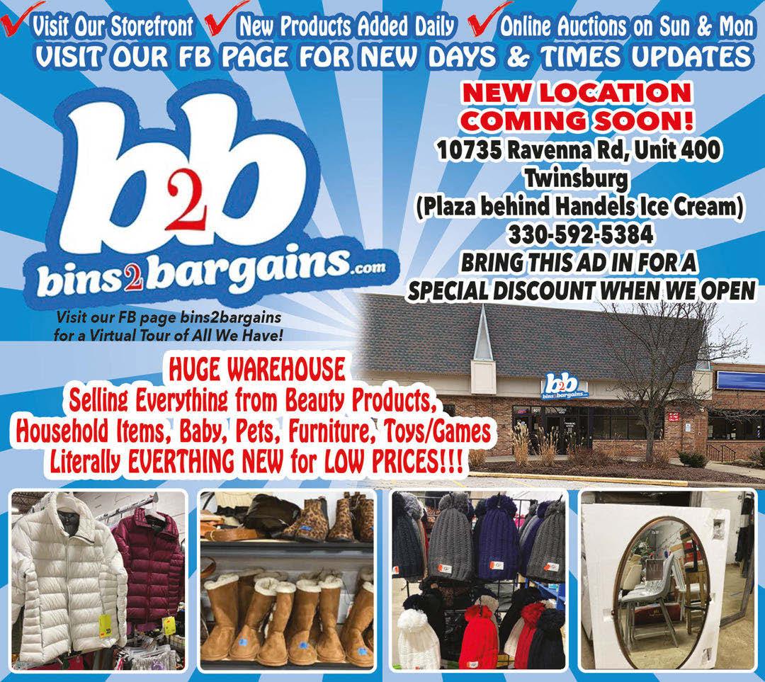 TWINSBURG Published By Town Money Saver, Inc. Corporate Office • PO Box 356 • Lucas, OH 44843 © 2023 TMS Franchising, Inc. All rights reserved. For advertising information, call 330-802-0290 NEXT ISSUE IN HOMES: February 16, 2023 ADVERTISING DEADLINE: February 1, 2023 PRSRT STD ECRWSS U.S. POSTAGE PAID Town Money Saver, Inc. townmoneysaver.com One coupon per customers. Do not combine with any other offer. Expires 2/16/2023 One coupon per customers. Do not combine with any other offer. Expires 2/16/2023 One coupon per customers. Do not combine with any other offer. Expires 2/16/2023 One coupon per customers. Do not combine with any other offer. Expires 2/16/2023 HOURS: Mon-Fri 10:30am-9pm, Sat 11am-9pm, Closed Sunday 905 E. Aurora Rd. • MACEDONIA PLAZA (Located next to Howard Hanna) 330-468-5575 NO LIMIT NO LIMIT NO LIMIT NO LIMIT Extra for BTE. Only valid at 905 E. Aurora Rd., Macedonia & 10434 Northfield Rd., Northfield. Not valid with any other offers or online orders. Expires 2/28/23 $5.75 ANY REG. SANDWICH Free Reg. sandwich excludes BTE. Not valid on Cravers or Kids Menu. Only valid at 905 E. Aurora Rd., Macedonia & 10434 Northfield Rd., Northfield. Not valid with any other offers or online orders. Expires 2/28/23 Extra for BTE. Only valid at 905 E. Aurora Rd., Macedonia & 10434 Northfield Rd., Northfield. Not valid with any other offers or online orders. Expires 2/28/23 $7.75 ANY MED. SANDWICH 2 Sandwiches & 2 - Reg. Potato Waffers® Reg. $16 • Med. $20 FAMILY PACK Includes 4 Sandwiches, 4 Reg. Potato Waffers® and 2-Liter Pepsi® Reg.-$33 +tax • Med.-$41 +tax Extra for BTE. Only valid at 905 E. Aurora Rd., Macedonia & 10434 Northfield Rd., Northfield. Not valid with any other offers or online orders. Expires 2/280/23 FREE Reg. Sandwich with Purchase of 3 Sandwiches at Regular Menu Price 2/28/23. 2/28/23. 8870 Darrow Rd • Twinsburg (Located in Twinsburg Town Center Plaza) (234) 212-1010 VALID ONLY AT TWINSBURG LOCATION VALID ONLY AT TWINSBURG LOCATION TT