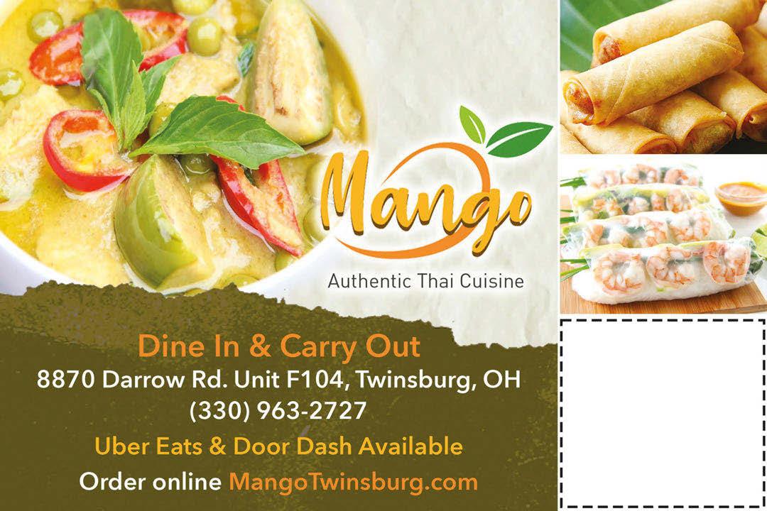 3100 Glenwood Blvd Suite 200 • Reminderville (located in the Drug Mart Plaza) 330-405-1235 Follow Us on Facebook for Daily Specials Hours: Mon-Thurs 11-10pm • Fri 11-10:30pm Sat Noon-10:30pm • Sun Noon-9pm DINNER SPECIAL $4 OFF 2 Dinners ANYTIME SPECIAL $5 OFF $25 or More ANYTIME SPECIAL $10 OFF $50 or More DINNER TIME ONLY Get $4.00 OFF Your Second Dinner when you purchase the First at reg. price. Valid only with coupon. Not good with other offers. Expires 2/28/23. T Valid only with coupon. Not good with other offers. Expires 2/28/23. T Valid only with coupon. Not good with other offers. Expires 2/28/23. T $75 $55 $45 WWW.SPECIALTOUCHCLEANERS.COM 330-922-4780