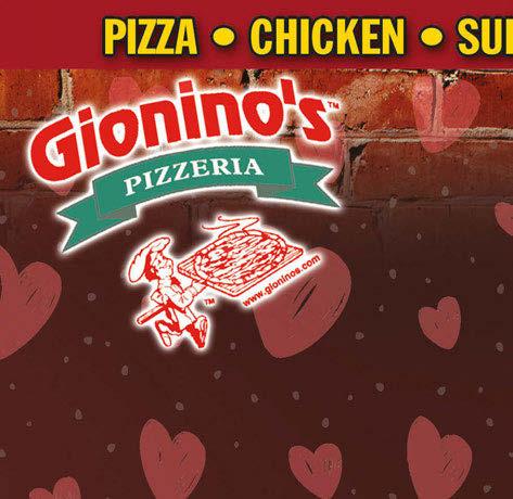 GIONINO’S PIZZERIA - Not valid with any other offer. Valid only at Twinsburg location. Expires 2-16-23 TMS GIONINO’S PIZZERIA - Additional items $1.60, extra cheese $2.75. Not valid with any other offer. Valid only at Twinsburg location. Expires 2-16-23 TMS Buy Any Sub Get 2nd Sub Of Equal or Lesser Value 1/2 OFF 1 Medium 12” Cheese Pizza Only $800 1 Large 16” Cheese Pizza Only $1295 GIONINO’S PIZZERIA - Additional items $1.60, extra cheese $2.75. Not valid with any other offer. Valid only at Twinsburg location. Expires 2-16-23 TMS GIONINO’S PIZZERIA - Additional items $2.00, extra cheese $3.20. Not valid with any other offer. Valid only at Twinsburg location. Expires 2-16-23 TMS GIONINO’S PIZZERIA - Additional items $2.00, extra cheese $3.20. Not valid with any other offer. Valid only at Twinsburg location. Expires 2-16-23 TMS GIONINO’S PIZZERIA - Additional items $2.00, extra cheese $3.20. Not valid with any other offer. Valid only at Twinsburg location. Expires 2-16-23 TMS Family Feast Special Large 16” 1-Item Pizza, 8 Pc. Chicken & JoJo’s & Pint of Cole Slaw Only $3250 1 Medium 12” 1-Item Pizza & 12 Buffalo Wings Only $2895 1 Large 16” 1-Item Pizza & 12 Buffalo Wings Only $3295 SUMMER SPECIAL 2 Large 16” 1-Item Pizzas Only $3095 GIONINO’S PIZZERIA - Additional items $2.00, extra cheese $3.20. Not valid with any other offer. Valid only at Twinsburg location. Expires 2-16-23 TMS Sunday - Thursday 11am-10pm Friday & Saturday 11am-11pm Delivery Available - $10 Minimum Order 330-405-0707 10755 Ravenna Road Twinsburg (Next to Powerhouse Gym) www.gioninos.com