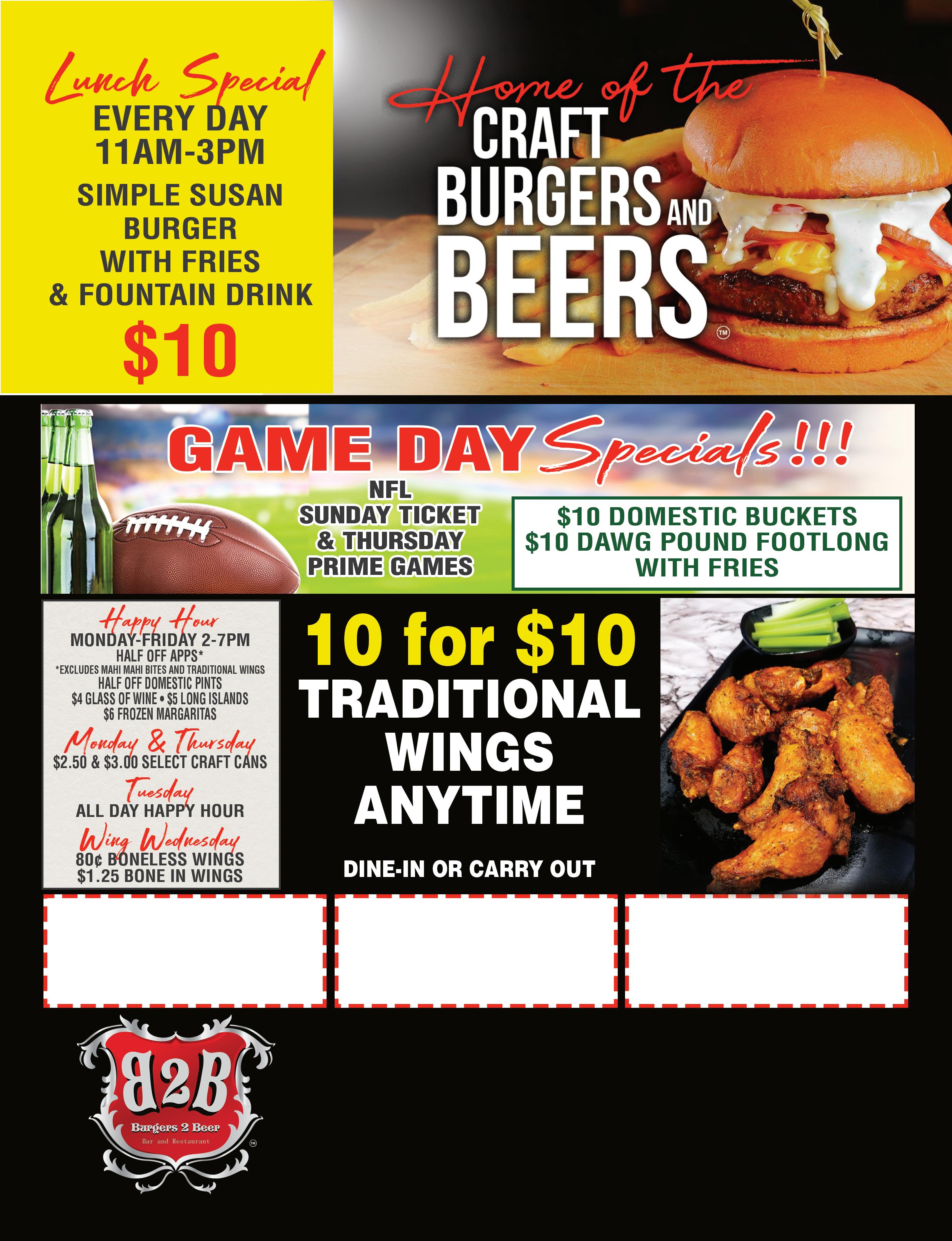 PURCHASE OF $25 OR MORE $5 OFF TWINSBURG LOCATION ONLY. EXCLUDES ALCOHOL. MUST PRESENT TMS COUPON. NOT VALID WITH ANY OTHER OFFER OR SPECIAL. EXPIRES 12/15/22 TWINSBURG LOCATION ONLY. EXCLUDES ALCOHOL. MUST PRESENT TMS COUPON. NOT VALID WITH ANY OTHER OFFER OR SPECIAL. EXPIRES 12/15/22 TWINSBURG LOCATION ONLY. FOOD PURCHASE ONLY. NOT VALID DURING HAPPY HOUR. MUST PRESENT TMS COUPON. NOT VALID WITH ANY OTHER OFFER OR SPECIAL. EXPIRES 12/15/22 8941 WILCOX DR. • TWINSBURG 234-212-1188 Full Menu burgers2beer.com Hrs: MON-THURS 11AM-10PM • FRI & SAT. 11AM-11PM • SUN: 12PM-9PM 100% GrassBeefFed PURCHASE OF $60 OR MORE $10 OFF APPETIZER Excluding Mahi Mahi Bites & Traditional Wings $5