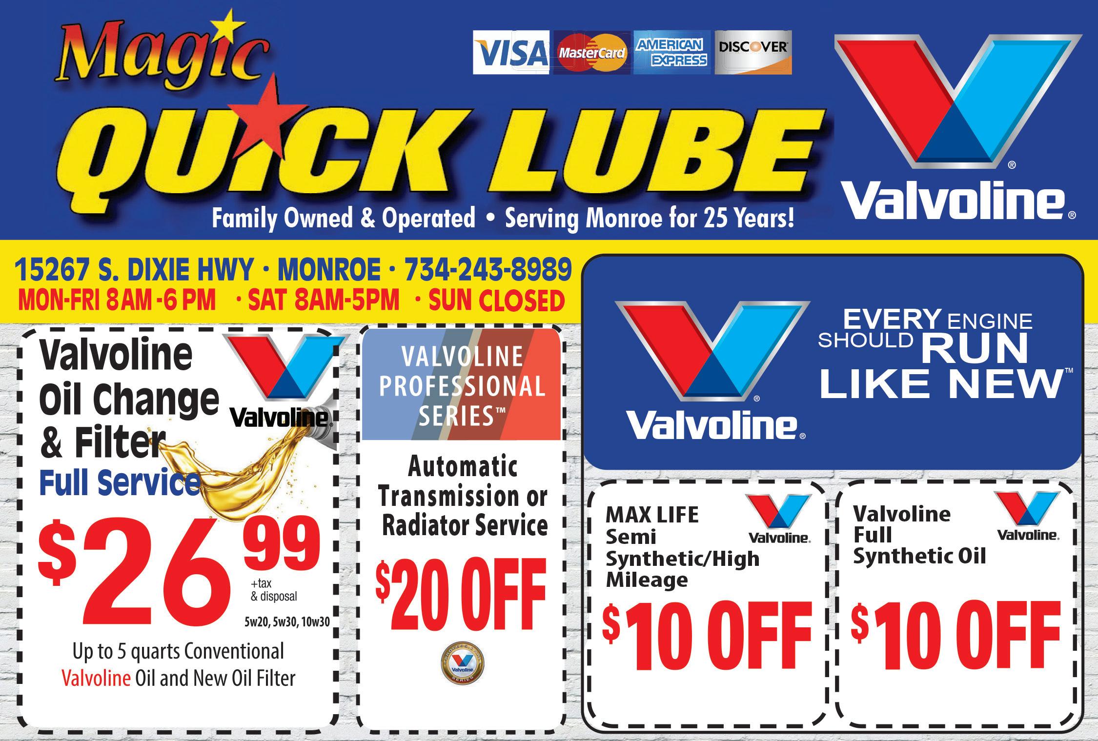 With TMS coupon. Expires 12/31/22. Must present coupon at time of service. With TMS coupon. Expires 12/31/22. Must present coupon at time of service. With TMS coupon. Expires 12/31/22. Must present coupon at time of service. With TMS coupon. Expires 12/31/22. Must present coupon at time of service. 29 + tax 5w20, 5w30, 10w30