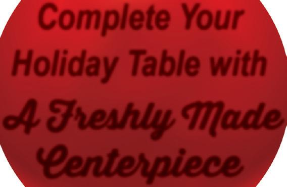 Floral Designs & Event Specialists Now Accepting Holiday Orders! Centerpieces • Greenery Poinsettia • Fresh Wreaths Bows (made to order) 1379 N. Monroe St MONROE 734-349-3223 Join Our Flower of the Month Club For only $300 you will receive fresh-cut flowers once a month for 12 months Makes a Great Gift!