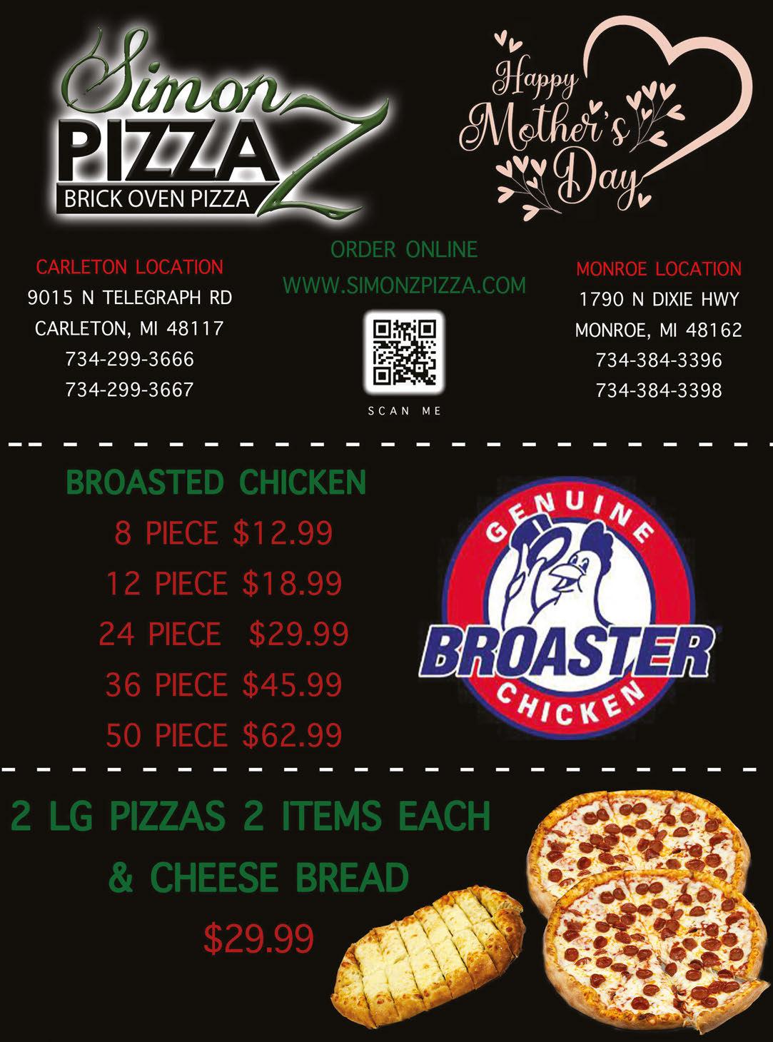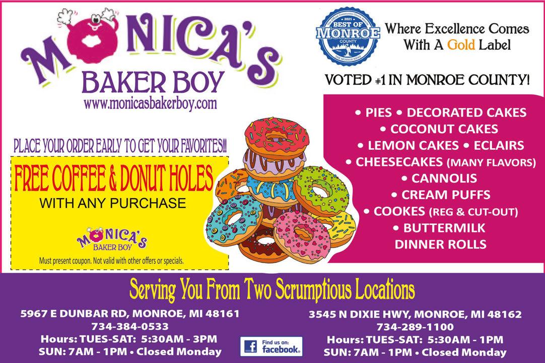 833 S. Monroe St. 734.639.1095 Spin Clean • All new and modern laundromat • Dexter pay app or coin operated • Drop-off or stay and play • Free Wi-Fi and large screen TV’s Too Busy? Hang, Fold & Dry Service *15 lbs. or more Mon-Thur 8am-10pm • Fri 8am-11pm Sat & Sun 7am-11pm last load in hour before closing “We take pride in our community & always offer a Clean and Sanitized facility” Monroe Liquor Plaza 734.241.2577 • wwwMonroeLiquor.com Fine Wines • Liquor • Craft Beer $1199 Must have coupon. Not valid with other offers. Expires 6/30/24 Large 2-topping Pizza $999 Must have coupon. Not valid with other offers. Expires 6/30/24 Large Pepperoni Pizza $1599 Must have coupon. Not valid with other offers. Expires 6/30/24 Large Specialty Pizza $2099 Must have coupon. Not valid with other offers. Expires 6/30/24 Family Special 2 Lg. 2-topping Pizzas $2799 Must have coupon. Not valid with other offers. Expires 6/30/24 Family Combo 1 Lg. Specialty Pizza, 1 Lg. 2-topping Pizza & 2 liter soda $799 Must have coupon. Not valid with other offers. Expires 6/30/24 10 Piece Chicken Wings Regular or BBQ
