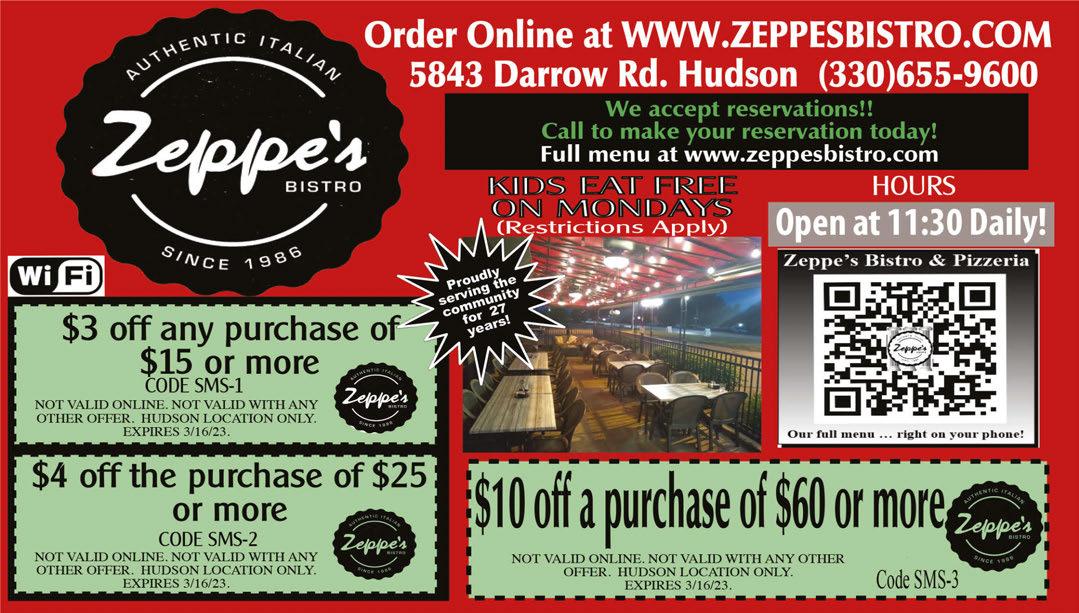 HUDSON’S ORIGINAL 5835 Darrow Rd. *Not affiliated with Don Patron Streetsboro $4 OFF Any Purchase of $30 or more $4 OFF Pitcher of Margaritas $10 OFF Any Purchase of $60 or more With coupon. One per visit. Not valid with any other offer. Expires 3/16/23. TMS With coupon. One per visit. Not valid with any other offer. Expires 3/16/23. TMS With coupon. One per visit. Not valid with any other offer. Expires 3/16/23. TMS FRIDAY & SATURDAY ONLY $25 OFF $500 OFF Expires 3/31/23. No additional discount. One coupon per customer. Some restrictions may apply. Expires 3/31/23. No additional discount. One coupon per customer. Some restrictions may apply.