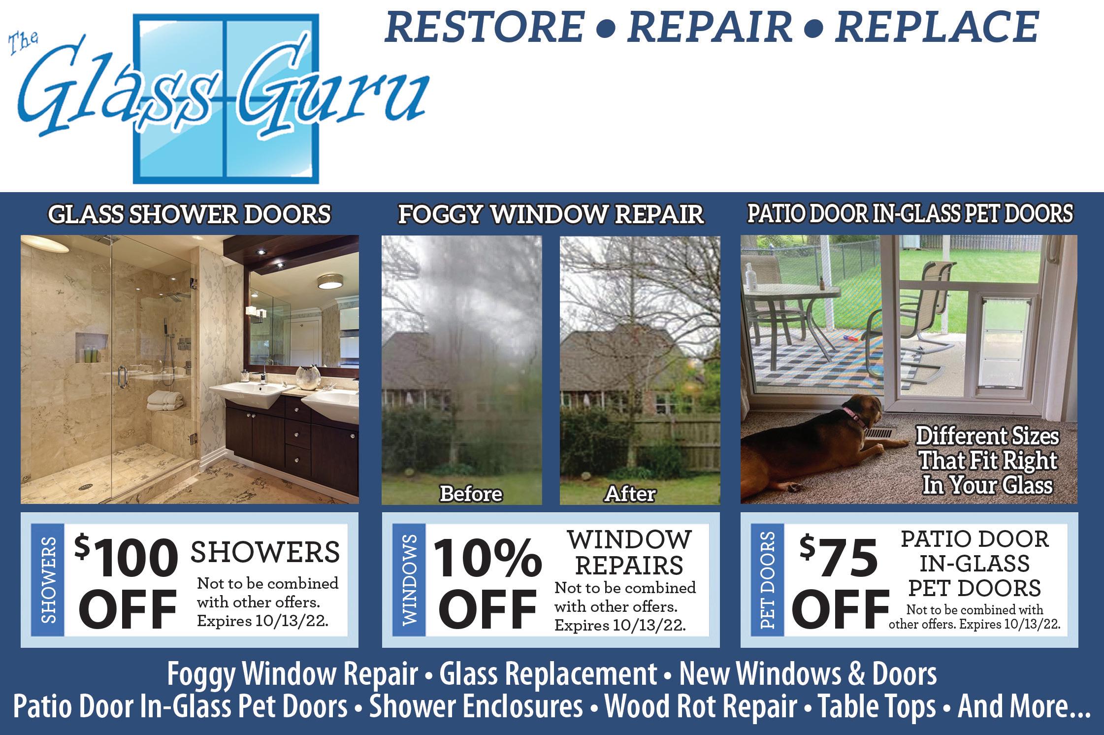 330-272-9855 TheGlassGuru.com/CentralOhio 7791 Capital Blvd., Ste 6, Macedonia, OH 44056 330-388-4116 120 Trudy Ave., Munroe Falls, OH 44262 • Hours: Mon-Fri 9am-5pm • Sat: 10am-1pm Family Owned & Operated Residential & Commercial Bonded & Insured We Clean & Inspect: • Inserts • Fireplaces • Free Standing Wood Stoves • Furnace Flues We Install: • Dampers • Caps • Liners • Firebacks • Grates • Cleanout Doors • Chase Covers We Do: • Tuck-pointing • Waterproofing • Crown Replacement & Repair • All Masonry Repairs $75 OFF Your First Cleaning Expires 10/15/22. 330-958-0184 $100 OFF Any Repair Work of $500 or More Expires 10/15/22. sootymykes.com