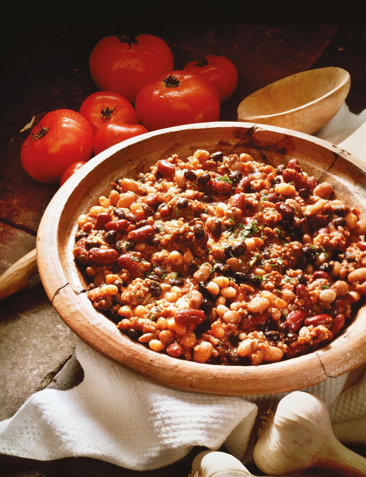 Stir in tomatoes, tomato sauce, beans, broth, chiles, & chocolate; bring to a boil. Reduce heat to medium; simmer 20 minutes, stirring occasionally. Stir in vinegar. Town