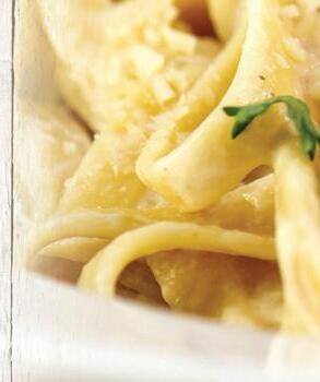 Sauté chicken in olive oil seasoned w/ salt pepper & garlic powder. Melt butter, add cream and simmer. Add Parmesan cheese and simmer until thickened. Add the pesto (if using). Pour sauce in bowl. Top with cooked fettuccine noodles and sautéed chicken and mix. Serve with garlic toast.