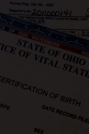 If you were born in Ohio , we can provide a certified birth certificate to play sports, attend school, apply for a passport or renew a driver’s license.