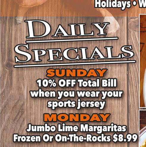 Call to place a Take Out Order FREE WIFI HAPPY HOUR MON-FRI 2PM - 6PM 1/2 OFF ALL APPETIZERS Not Valid Friday & Saturday Valid only after 4pm with coupon. Not valid with any other special or coupon. Alcohol excluded. One coupon per table. Expires 5/16/24 Not Valid Friday & Saturday Valid only after 4pm with coupon. Not valid with any other special or coupon. Alcohol excluded. One coupon per table. Expires 5/16/24 Not Valid Friday & Saturday Valid only after 4pm with coupon. Not valid with any other special or coupon. Alcohol excluded. One coupon per table. Expires 5/16/24 ONLINE ORDERING AVAILABLE FREE Cup of Soup with purchase of an Entreee NO COUPON NEEDED