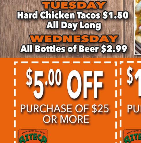 $300 Purchase of $25 or More Valid anytime. Dine in only. Expires 5-16-24. Valid only with coupon. Not valid with any other special or coupon. One coupon per table. 300 Purchase of $25 or More Valid anytime. Dine in only. Expires 5-16-24. Valid only with coupon. Not valid with any other special or coupon. One coupon per table. $500 Purchase of $35 or More Valid anytime. Dine in only. Expires 5-16-24. Valid only with coupon. Not valid with any other special or coupon. One coupon per table. Fajita Burrito Quesadilla Toluca