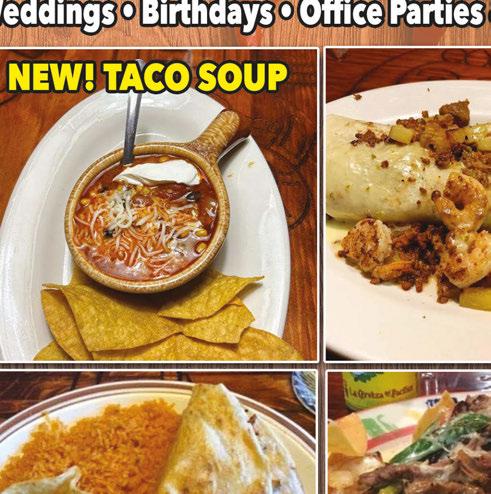 10 Tacos Beef or Chicken - Hard or Soft, Rice & Beans, Lettuce & Cheese, 2 Bags of Chips & 3 Salsas (Grilled Steak or Chicken $30) FAMILY PACK FAJITA DINNER (Feeds 4) Chicken $29.99 Steak $39.99 Shrimp $39.99 Includes Rice & Beans, Tortilla, Side of Lettuce & Sour Cream, 2 Large Chips & Large Salsa With coupon only. No expiration. Not valid with any other offer. With coupon only. No expiration. Not valid with any other offer. With coupon only. No expiration. Not valid with any other offer. $3 OFF $25 or more dinner check SPEND $35 GET $5 OFF Grad Pack #1 20 x 20 Tent 6 Tables 48 Chairs $399 One coupon per rental. Delivery not included. Expires 5-15-24. One coupon per rental. Delivery not included. Expires 5-15-24. Grad Pack #2 20 x 30 Tent (grass only) 9 Tables 72 Chairs $499