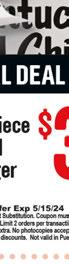 GREEN/PORTAGE LAKES/FIRESTONE PARK April 2024 Shop locally. Save locally. Scan our QR code to fi nd your perfect invitation! ANY PURCHASE OF $20 OR MORE One coupon per party. Must present coupon. Expires 5/15/24. One coupon per party. Must present coupon. Expires 5/15/24. ANY PURCHASE OF $30 OR MORE WE’LL CATER YOUR PARTY! FAST LUNCH SPECIALS! DAILY SPECIALS! MON - Margarita’s ALLDAY! Reg. Size - LIME FROZEN OR ON THE ROCKS $2.99 TUE - $1.99 TACO TUESDAYS Ground Beef or Chicken WED - All BOTTLED BEER $2.50 Chicken or Steak Arepas $9.99 THUR - PITCHER MARGARITAS Lime Frozen or On the Rocks $15.99 FRI - All TEQUILA SHOTS $5 SAT - Jumbo Margaritas ANY FLAVOR $5.99 SUN - 16oz DRAFT BEER $1.99 Delivery through For a Full Menu: www.whitehousechicken.com GREEN 4195 Massillon Rd. (Located in the Green Plaza) 330-896-5644 Hours: Mon 4pm-8pm • Tues, Wed, Thurs 4pm-9pm Fri & Sat 11am-9pm • Sun 11am-8pm Buy 2 Classic Chicken Dinners Get a 3rd Classic Chicken Dinner FREE Buy a 16pc Mixed or 15pc Tender Bucket Get $5.00 OFF NOT VALID IN CONJUNCTION WITH ANY ONLINE CHOW NOW ORDERS. NOT VALID IN CONJUNCTION WITH ANY ONLINE CHOW NOW ORDERS. Limit one coupon per customer. Must present coupon at time of purchase. Not valid with any other offer. Valid at Green location only. Expires 5/16/24 TMS Limit one coupon per customer. Must present coupon at time of purchase. Not valid with any other offer. Valid at Green location only. Expires 5/16/24 TMS Order with ChowNow or @www.whitehousechicken.com go to online ordering or on our Facebook Page DOWNLOAD OUR NEW APP TODAY!