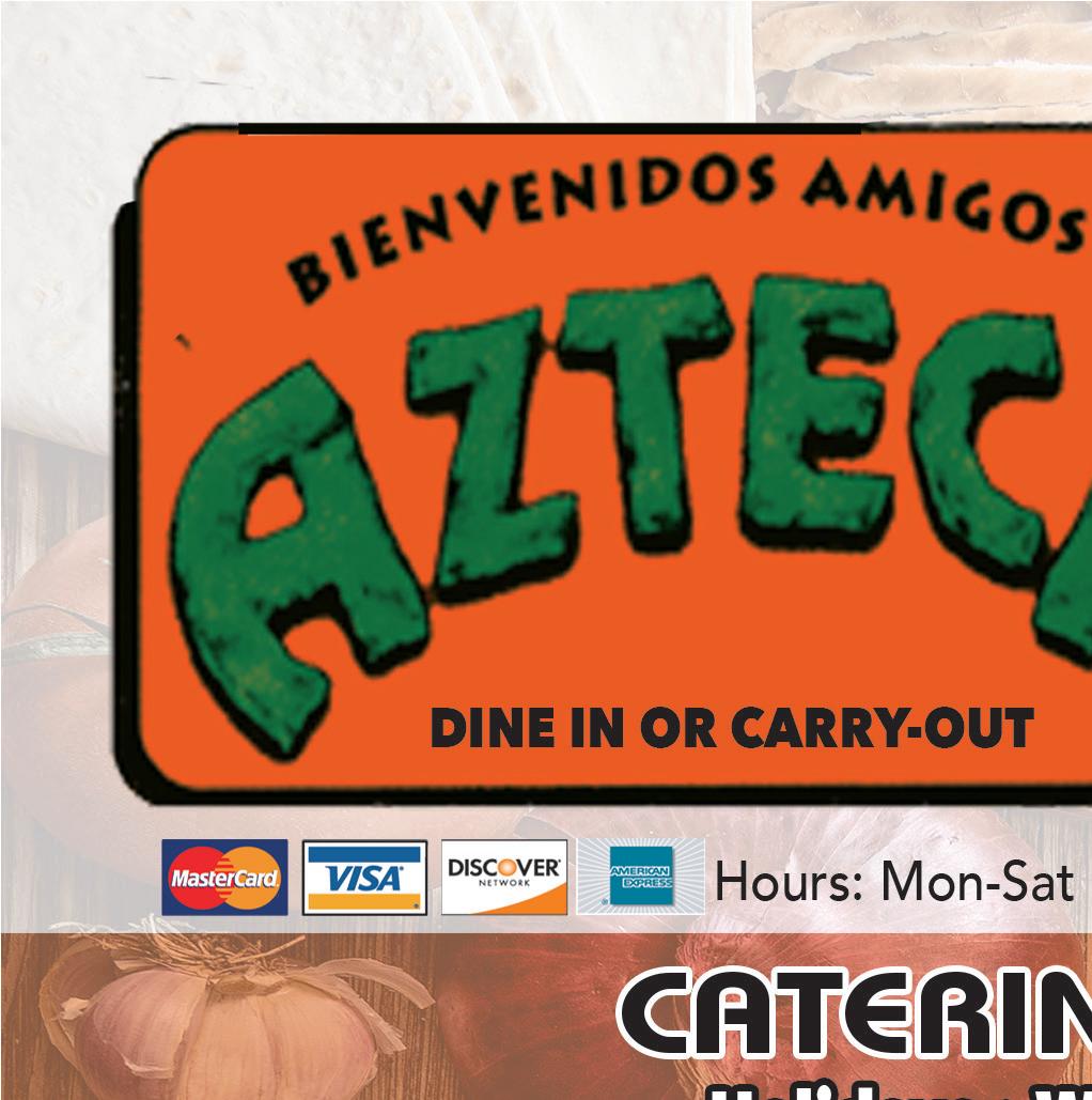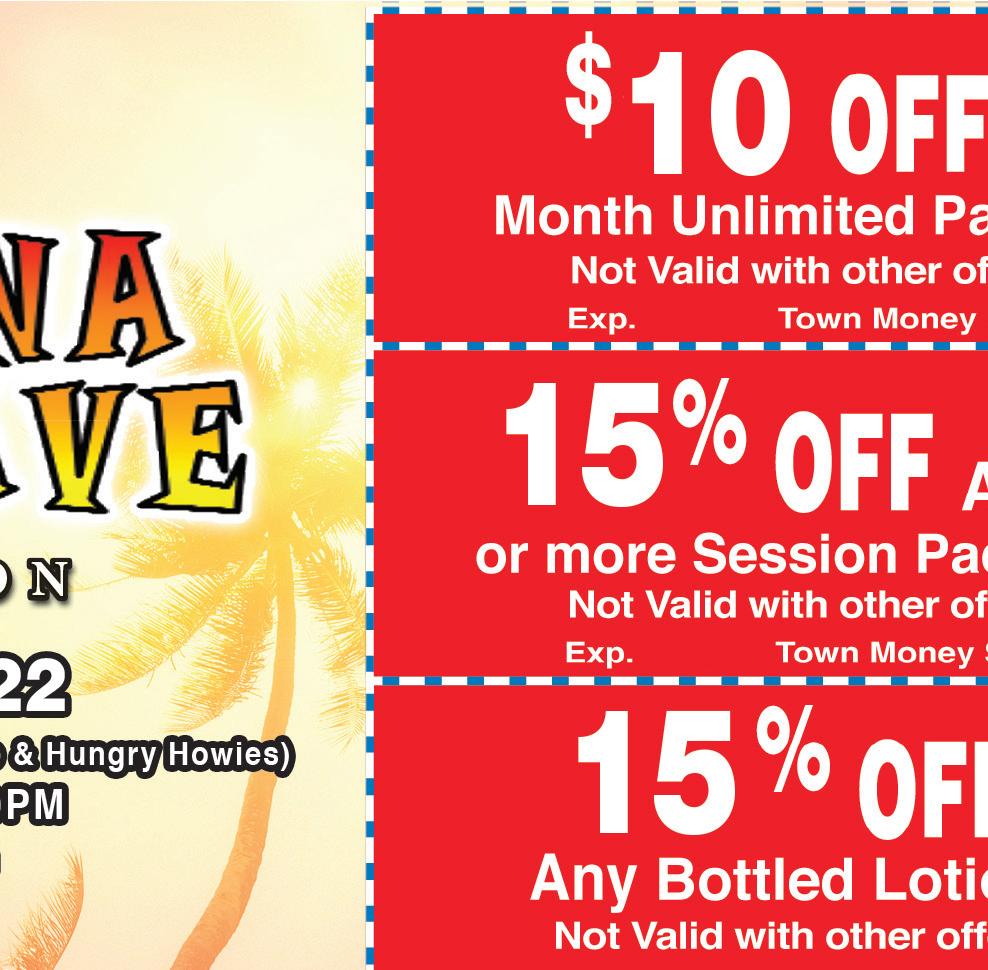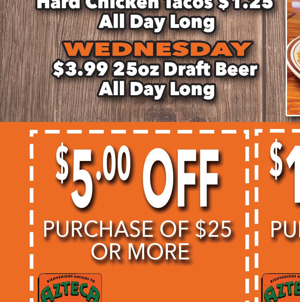 11/10/22 11/10/22 11/10/22 Not valid with other offers. Expires 11/10/22. TMS Delivery through ANY PURCHASE OF $15 OR MORE One coupon per party. Must present coupon. Expires 11/15/22. One coupon per party. Must present coupon. Expires 11/15/22. ANY PURCHASE OF $30 OR MORE WE’LL CATER YOUR PARTY! FAST LUNCH SPECIALS! DAILY SPECIALS! MON - Margarita’s ALL DAY! Reg. Size - LIME FROZEN OR ON THE ROCKS $2.99 TUE - $1.99 TACO TUESDAYS Ground Beef or Chicken WED - All BOTTLED BEER $2.50 Chicken or Steak Arepas $9.99 THUR - PITCHER MARGARITAS Lime Frozen or On the Rocks $15.99 FRI - All TEQUILA SHOTS $5 SAT - Jumbo Margaritas ANY FLAVOR $5.99 SUN - 16oz DRAFT BEER $1.99 For advertising information, call 330-620-8491 NEXT ISSUE IN HOMES: November 10, 2022 ADVERTISING DEADLINE: October 26, 2022 Take us with you. Download our mobile app today. Shop locally. Save locally. townmoneysaver.com