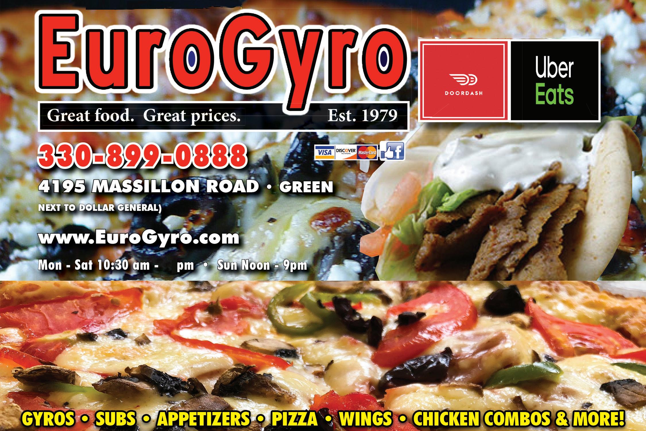 FULL SERVICE AUTO REPAIR & RECOMMENDED MANUFACTURER MAINTENANCE ALL PARTS & LABOR 24 Months/24,000 Miles Nationwide Warranty We Specialize in Foreign & Domestic Cars & Diesel! Mon - Fri 8am - 5pm PROUDLY SERVING GREEN FOR 17 YEARS! A-1 Auto Maintenance&Repair 330-896-5663 4776 Massillon Rd. in Green On the Corner of Massillon and Greensburg Rd. Valid only with coupon. Not valid with other offers. A-1 Auto Maintenance & Repair. Expires 11-10-22. Town Money Saver $20 OFF ANY REPAIR OVER $100 $40 OFF ANY REPAIR OVER $200 Valid only with coupon. Not valid with other offers. A-1 Auto Maintenance & Repair. Expires 11-10-22. Town Money Saver SAVE $20 COOLANT FLUSH Valid only with coupon. Not valid with other offers. A-1 Auto Maintenance & Repair. Expires 11-10-22. Town Money Saver Synthetic Oil Extra Oil Change, Tire Rotation and Balance, Check Wheel Alignment and Brake Inspection, Wiper Blades, Coolant Flush NOW $99 ($46 Savings) FALL SPECIAL Valid only with coupon. Not valid with other offers. A-1 Auto Maintenance & Repair. Expires 11-10-22. Town Money Saver INSTANT BRAKE SAVINGS! $40 OFF PER AXLE NOW DELVERING ONLY WITH $4.99 DAVID’S SUBS MONDAY SPECIAL THURSDAY SPECIAL WEDNESDAY SPECIAL $4.99 $3.99 $6.99 ANY GYRO 7” HOT BUTTERED CHEESE STEAK LG 1 TOPPING PIZZA OR SMALL 2 TOPPING PIZZA DINE IN & CARRY OUT DINE IN & CARRY OUT DINE IN & CARRY OUT FRIDAY SATURDAY & SUNDAY SPECIALS $9.99 LG PIZZA UP TO 3 TOPPINGS www.EuroGyro.com Mon-Sat 10:30am-9pm Sunday 11am-9pm
