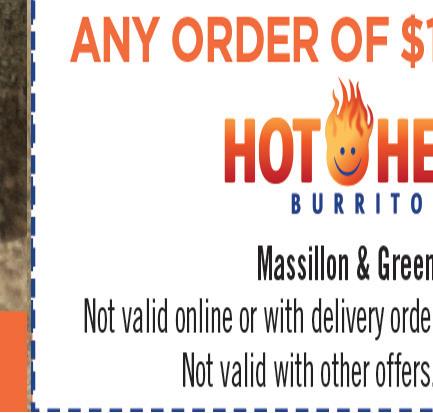 We Do Fundraising & Catering! BURRITOS • BOWLS • TACOS • NACHOS • QUESADILLAS • KIDS MEALS & MORE! NEW OWNERSHIP AT BOTH LOCATIONS! GREEN 3875 Massillon Rd. (330) 563-4117 MASSILLON 2010 Lincoln Way E. (330) 809-6010 See our full menu @ hotheadburritos.com 10/15/2022 10/15/2022