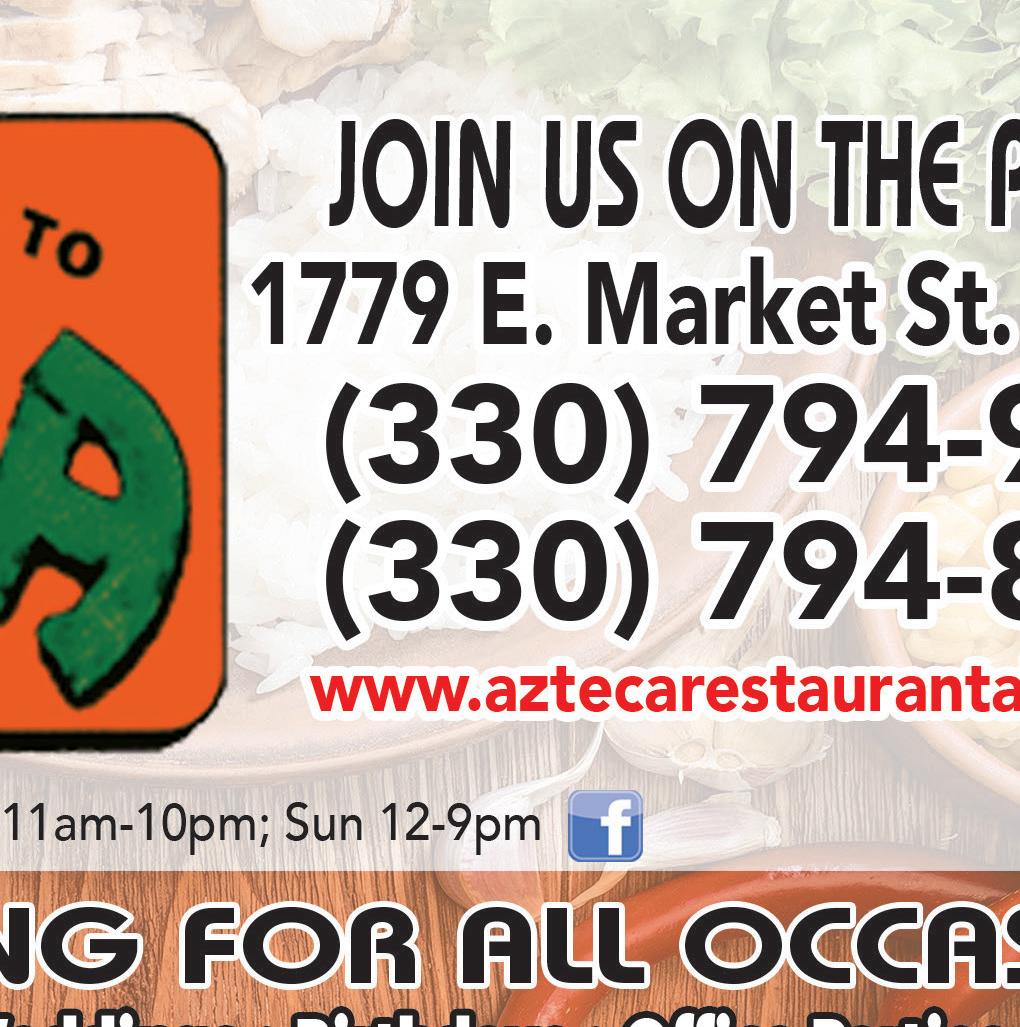 10/13/22 10/13/22 10/13/22 Not valid with other offers. Expires 10/13/22. TMS Delivery through ANY PURCHASE OF $15 OR MORE One coupon per party. Must present coupon. Expires 10/15/22. One coupon per party. Must present coupon. Expires 10/15/22. ANY PURCHASE OF $30 OR MORE WE’LL CATER YOUR PARTY! FAST LUNCH SPECIALS! DAILY SPECIALS! MON - Margarita’s ALL DAY! Reg. Size - LIME FROZEN OR ON THE ROCKS $2.99 TUE - $1.99 TACO TUESDAYS Ground Beef or Chicken WED - All BOTTLED BEER $2.50 Chicken or Steak Arepas $9.99 THUR - PITCHER MARGARITAS Lime Frozen or On the Rocks $15.99 FRI - All TEQUILA SHOTS $5 SAT - Jumbo Margaritas ANY FLAVOR $5.99 SUN - 16oz DRAFT BEER $1.99 For advertising information, call 330-620-8491 NEXT ISSUE IN HOMES: October 13, 2022 ADVERTISING DEADLINE: September 28, 2022 Take us with you. Download our mobile app today. Shop locally. Save locally. townmoneysaver.com