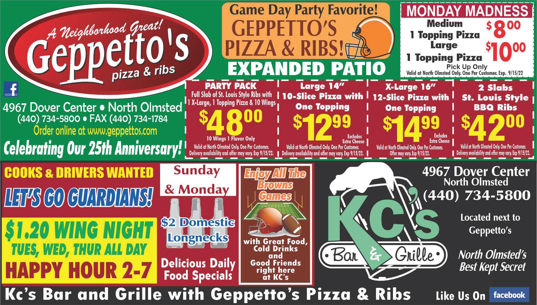 Protect Your Gutters WITHTHE #1 MICRO-MESH GUARD ONTHE MARKET! 440-595-3896 thegutterboys.com GUARDSTTER | GUS | CLEANING The Gutter Boys 440-732-4056 CALL TODAY FOR A FREE ONSITE CONSULTATION AND ESTIMATE! Expires•COUPON CODE: 9/15/22 TMS08 $500OFF $250OFF Whole House Guard Installation Whole House Seamless Guard Installation 100 ft minimum purchase required. Present ad. Terms and restrictions apply. Not valid with any other offers. TMS ad must be mentioned. Offer expires 9/1/22. TMS08 5 “Go with Northeast Ohio's Highest Rated Power Washing Company”- Owner Ken Wilson PristineClean.com Pristine Clean Features an Eco-Friendly Process House Washing | Roof Cleaning | Concrete Washing & Sealing Financing Available More Than Just A Power Washing Wash |Protect |Renew We’ve Stocked Up! Most Jobs Complete Within A Couple Of Weeks! Owner -AnthonyAlberino Concrete Washing & Sealing Roof Washing HouseWashing No Interest Or Payments For 18 Months Terms and restrictions apply. Cannot be combined with any other offer. For Full House, Roof CleanConcrete Driveway Wash & Seal. or Jobs Only 20% Off Power Washing Our Biggest Discount Ever! FREE Delivery In North Olmsted - DELIVERY 11am-Midnight $.00 min. order 9 DAILY LUNCH & DINNER SPECIALS $18.99 $18.99 Add’l toppings $1.50 each Excludes extra cheese Add’l toppings $.50 each 2 Excludes extra cheese Add’l toppings $1.50 each Excludes extra cheese SAVE 7.51 $ SAVE 7.51 $ 2 LARGE 2 ITEM 2 LARGE 2 ITEM With coupon. Not valid with other offers. Expires9-15-22 With coupon. Not valid with other offers. Expires9-15-22 With coupon. Not valid with other offers. Expires9-15-22 With coupon. Not valid with other offers. Expires9-15-22 With coupon. Not valid with other offers. Expires9-15-22 With coupon. Not valid with other offers. Expires9-15-22 With coupon. Not valid with other offers. Expires9-15-22 With coupon. Not valid with other offers. Expires9-15-22 With coupon. Not valid with other offers. Expires9-15-22 A’S RTURO A’S RTURO A’S RTURO A’S RTURO A’S RTURO A’S RTURO A’S RTURO A’S RTURO A’S RTURO A’S RTURO Add’l toppings $1.75 each $13.95 $14.75 X-Large 16”, 12 cut 1-Item Pizza Half Sheet 1-Item Pizza $26.99 Add’l. toppings $3.each 75 Excludes extra cheese SHEET PIZZA SPIZZAS MALL X-LARGE or HALF SHEET 2 Large 12”,8 Cut, 2 Item Pizzas 2 Large 12”,8 Cut, 2 Item Pizza FULL SHEET, 40 Cut 1 Item Pizza LUNCH SPECIALS DAILY• KITCHEN OPEN 11:00am - 12:am•45HOURS SUBJECT TO CHANGE OPEN 7 DAYS A WEEK $1.799 Large 12”8 cut 1 Item Pizza Large Salad & with Cheese PIZZA &SALAD Add’l toppings $1.50 each• Excludes extra cheese Add’l toppings $1.50 each• Excludes extra cheese Add’l toppings $1.75 each 2 Small 1 Item Pizzas $17.50 $10.50 $13.75 Large 12”, 8 cut X-Large 16”, 12 cut 1 Item Pizzas MON, TUES & WEDS ONLY MON, TUES & WEDS (equal or lesser value) Buy One Get One With Beverages Excludes Fish Fry Any Entree HALF OFF DINE IN SPECIAL 4 piece & 6 JoJo’s $.9 124 8piece&8JoJo’s$1.9 74 12piece&12JoJo’s$.9 214 16piece&16JoJo’s$2.9 64 24piece&24JoJo’s$9 34.9 w/Coleslaw ARTURO’S CHICKEN 50 pieces Chicken Only $5.99 9 Large Cheese Pizza $.95 8 BOGO HalfOffCoupon NotValid 440- 777-2420 26679 Brookpark Ext. North Olmsted FREE Wi-Fi Happy Hour 11am-7pm Also Serving Fairview, Westlake, Olmsted Falls + Domestic Bottles $2.25 11am-7pm Find Us On Fresh Dough Made Daily Fresh Veggies Add’l. toppings $3.each 75 Excludes extra cheese $33.99 FULL SHEET, 1 Item Pizza & Large Salad with Cheese SHEET &SALAD Where do you get late night pizza? Taking Pizza Orders Up to 12:45am Every Day ARTURO’S! FULL MENU AVAILABLE FOR DINE-IN, CARRY-OUT & DELIVERY Your Choice $10.50 With coupon. Not valid with other offers. Expires9-15-22 With coupon. Not valid with other offers. Expires9-15-22 A’S RTURO A’S RTURO $.825 $.99 22 $1.599 RIB DINNER Italian Sub (Hot or Cold) or Meatball Sub Half Slab Full Slab with coleslaw & fries Large Party Room ForAny Occasion FOOTBALLFANTASYDRAFTS BANQUET CATERING ORDERS REQUIREA24 HOUR NOTICE PLEASE SUB SPECIAL