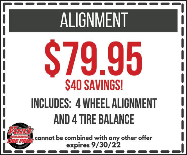 NORTH OLMSTED Published By Town Money Saver, Inc. Corporate Office • PO Box 356 • Lucas, OH 44843 © 2018 TMS Franchising, Inc. All rights reserved. For advertising information, call Rick 330-697-5345 NEXT ISSUE IN HOMES: September 15, 2022 ADVERTISING DEADLINE: August 24, 2022 PRSRT STD ECRWSS U.S. POSTAGE PAID Town Money Saver, Inc. townmoneysaver.com DOVER CENTER LORAIN $ 5OFF ANY WASH Expires 9/15/22 Cannot be combined with any other offers/discounts. Valid at North Olmsted location ONLY. Unlimited Washes Free Vacuums 27100 Lorain Road•North Olmsted•44070