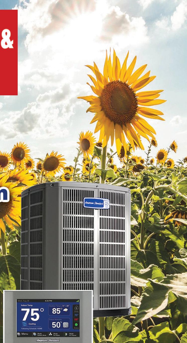 FURNACE CLEAN & TUNE-UP HUGE • 440-234-4157 With this coupon. Not valid with other offers or prior service. Expires 9-15-22. TMS HUGE • 440-234-4157 With this coupon. Not valid with other offers or prior service. Expires 9-15-22. TMS Just $94.00 $30 OFF WITH REPAIR EARLY BIRD FALL SPECIAL Up To $500 OFF Any American Standard Air Conditioner or Furnace Unit *See your participating independent American Standard Dealer for complete program eligibility, dates, details and restrictions. Instant rebate up to $600. All sales must be to homeowners in the United States. Void where prohibited. Valid on Qualifying Equipment only. Offer expires 08/11/2022. cb HUGE • 440-234-4157 (Excluding Maintenance) Offer expires 9/15/22. Service all makes and models. Some restrictions apply. Must present coupon at time of service. Cannot be combined with other offers or discounts. Expires 9-15-22 Expires 9-15-22 Expires 9-15-22 $100OFF $200OFF 10%OFF hot water tanks tankless hot water tanks any plumbing or electrical work