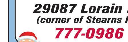 35107 Center Ridge Rd. • North Ridgeville (Next to Aldi’s) 440-353-0091 Store will be closed Dec 23-Jan 9 Holiday Sale Up to 50% off select items. Expires 1-19-23 Holiday GiftCards Available DEFEND YOUR VEHICLE 34200 Lorain Road North Ridgeville 44039 440.327.2196 aworces268@aol.com PRECISION TUNE-UP TIME! www.WORCESTERS.com It�s time to schedule your Spring Tune-Up for: Commercial and Residential Mowers, Lawn & Garden Tractors, Tillers... Schedule by 3-1-2& get 3 FREE PICK-UP& DELIVERY* Schedule 3--2to13-34-12for 50% OFF PICK-UP& DELIVERY* *(Up to $99 Value) POWER EQUIPMENT, TRAILERS, PET FEED