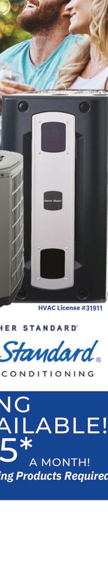 711 W. Bagley Rd., Berea 440-390-3831 hugeheating.com One Call to Serve All your HVAC, PLUMBING &ELECTRICAL Call to set up for an estimate on gas and electric service to your outdoor swimming pool. A/C Clean & Check $96 (Reg $128) Sump Pump & Check Valve Change Out $585 ($800 Value) Pull & Reset with a New Mansfield Summit Toilet Includes supply line and stop valve $675 (Reg $775) Instant Rebates up to $1,500* FREE In-Home Estimates *See your independent dealer for complete program eligibility, dates, details and restrictions. Special financing offers OR instant rebate from $600 valid on qualifying systems only. All sales must be to homeowners in the United States. Void where prohibited • Panel Upgrades • Circuit Breakers • Wiring Upgrades • Generators • Swimming Pools • Ceiling Fans • Bonding & Grounding (To Code) • Lighting Controls & Upgrades • Electrical Troubleshooting & More! • Tank & Tankless Hot Water Heaters • Aquasana Water Systems • Faucets & Sinks • Pipe Repair • Drains • Leak Repairs • Dishwashers & Garbage Disposals • Toilets & Upgrades • Polybutylene Pipe Replacement & More!* *Subject to credit approval. This offer is neither sponsored nor endorsed by American Standard Heating and Air Conditioning. With this coupon. Not valid with other offers or prior services. Expires 6/15/23. With this coupon. Not valid with other offers or prior services. Expires 6/15/23. With this coupon. Not valid with other offers or prior services. Expires 6/15/23.