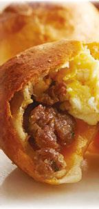 Separate each biscuit in half. Press each into a 4-inch round. Spoon 1 heaping tablespoon full of each eggs, meat & cheese onto center of each round. Gently fold edges up and over lling; pinch to seal.